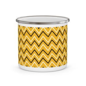 Chic Enamel Camping Mug, Modern Outdoor Coffee Cup, Nature Lover Gift, Adventure Mug, Zigzag Pattern Camp MugMugs