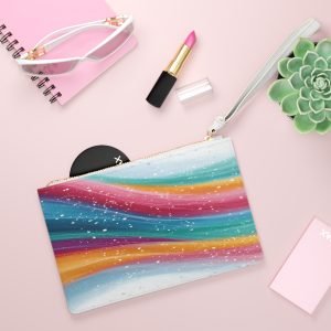 Colorful Wave Accessory Pouch, Ocean-Inspired Makeup Bag, Travel Organizer, Gift for Her, Customizable Clutch, Rainbow Pattern PouchClutch Bag