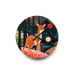 Whimsical Forest Acrylic Wall Clock – Nature Decor, Deer Design, Home Gift, Woodland Wall Art, Unique TimepieceAcrylic Wall Clock