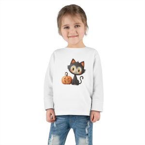 Halloween Cat Toddler Long Sleeve Tee, Cute Halloween Shirt, Kids Costume Top, Fall Apparel, Pumpkin DesignToddler Sweatshirt