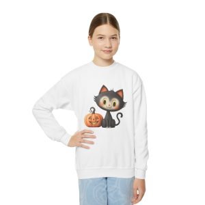 Cute Cat Halloween Hoodie for Kids, Perfect for Costume Parties, Fall Celebrations, Trick or Treating, Everyday WearYouth Long Sleeve Tee