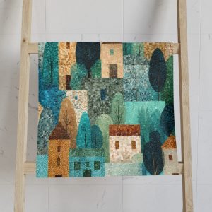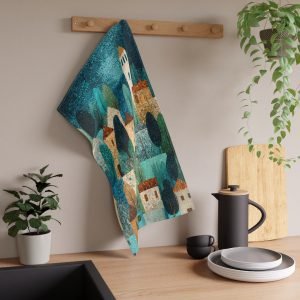 Serene Village Face Towel, Soft Cotton Towel, Vintage Townscape Design, Bathroom Decor, Gift Idea for Home