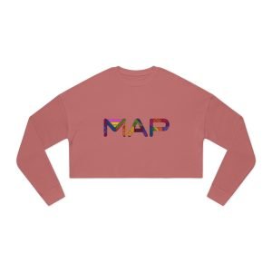 Women’s Cinched Bottom Hoodie with Colorful MAP Design, Cozy Casual Wear, Trendy Spring Fashion, Birthday Gift, Designs for TravelersWomen's Cropped Fleece Pullover
