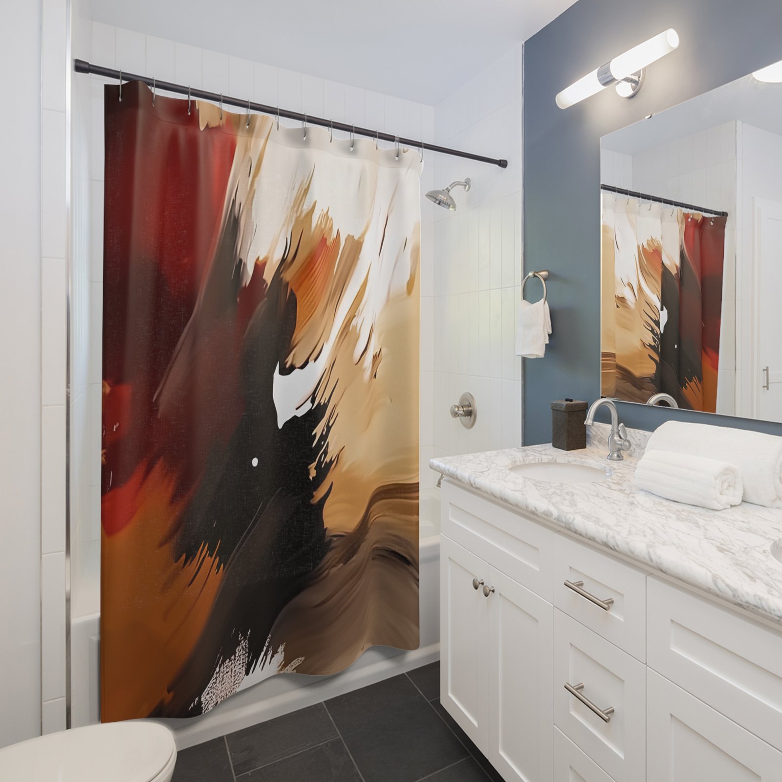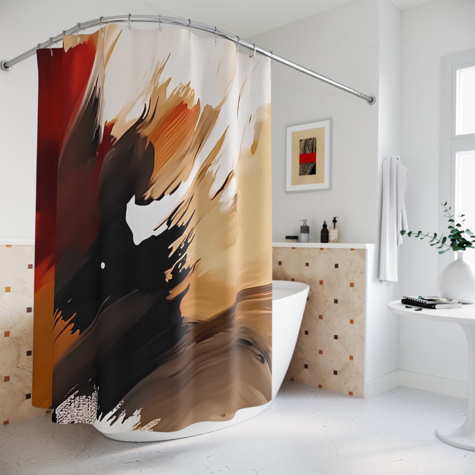 Transform your bathroom with this striking shower curtain. Made from 100% polyester, it not only looks fantastic but is also durable and dries quickly, making it a practical choice for any home. The bold, abstract design adds an artistic flair, creating a calming atmosphere that elevates your daily routine. Perfect for anyone looking to refresh their space, this shower curtain is especially fitting for art lovers or those seeking a modern touch in their decor. It makes an ideal gift for housewarmings, weddings, or festive occasions like holidays or special celebrations. Embrace a new vibe in your bathroom with this stylish and functional decor piece!