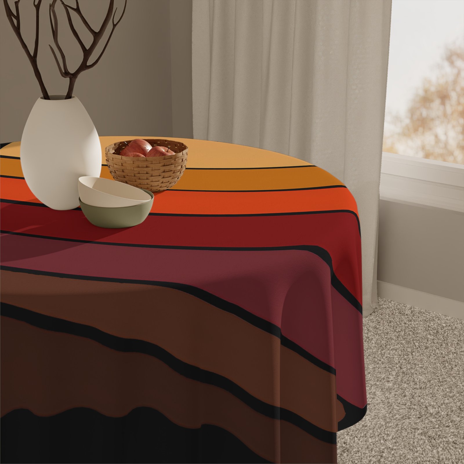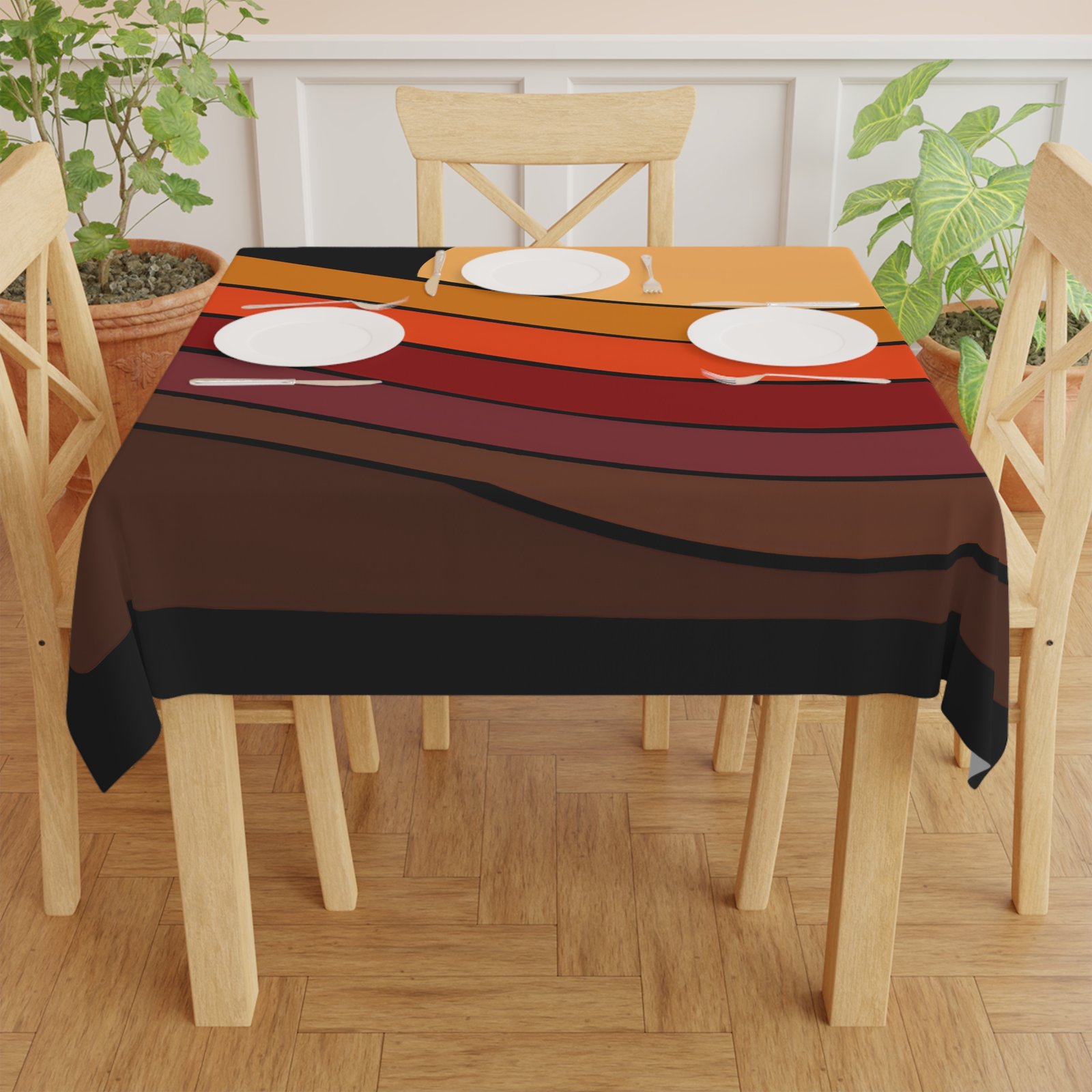 Transform your dining experience with this stunning tablecloth, designed to bring warmth and vibrancy to any table setting. The bold and beautiful print captures the essence of a sunset, making it a perfect centerpiece for gatherings, family meals, or casual brunches. Crafted from durable polyester, it not only retains its shape but also dries quickly, ensuring longevity and ease of maintenance. Lightweight and soft to the touch, this tablecloth is ideal for entertaining guests while adding a lively touch to your home decor. Perfect for holiday celebrations, casual get-togethers, or daily use, this product caters to anyone who loves hosting and wants to make dining special. Amp up your home aesthetics and enjoy the cozy vibes it brings, no matter the occasion!