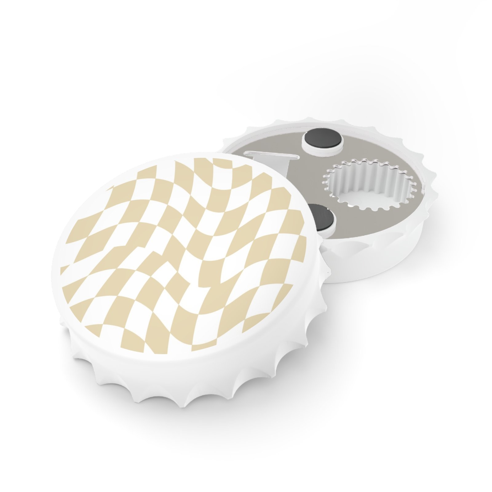 Bottle openers are designed to make our lives easier, and that’s just what this custom opener does – but with more style. Equipped with a handy magnetic back, a unique bottle cap shape, and two different mechanisms for opening bottles, this has it all. Easily design and create a novelty item that’s as useful as it is good-looking.
