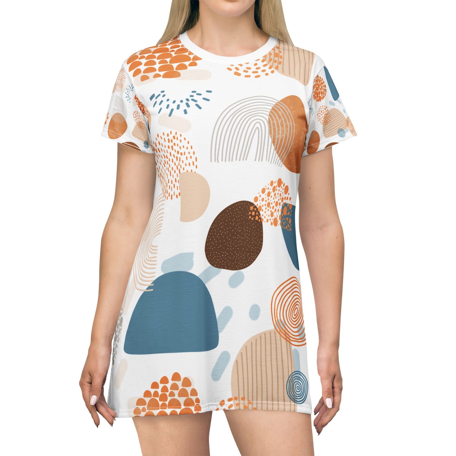 This stylish T-Shirt Dress elevates your casual wardrobe with a blend of comfort and modern design. Made with 100% polyester, it offers a lightweight feel and a stretchy fit that hugs your silhouette beautifully. The vibrant, abstract print adds a splash of color, making it perfect for summer outings or laid-back brunches with friends. Ideal for fashion-forward individuals, this dress can easily be dressed up or down for any occasion. Whether you’re heading to the beach, enjoying a picnic, or simply relaxing at home, this T-Shirt Dress is versatile and chic. It makes an excellent gift for birthdays, holidays, or any special celebration, bringing joy and style to your loved ones’ lives.