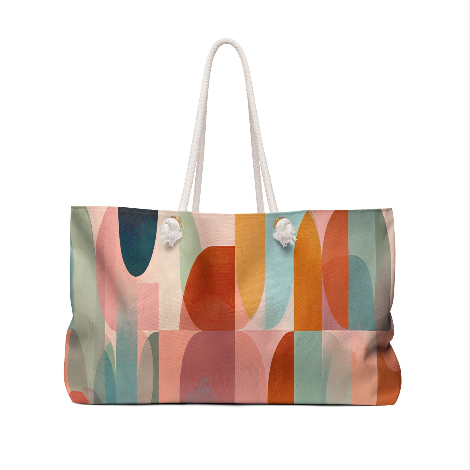 Introducing the perfect Weekender Bag, designed for the modern traveler. Crafted with a unique, colorful pattern, this bag brings a vibrant touch to your weekend getaways or daily outings. Its roomy dimensions offer ample space for all your essentials, whether it’s for a short trip or a day at the beach. The soft, cream-colored rope handles not only add to its aesthetic appeal but also provide comfort when carrying. This bag is ideal for adventure seekers, trendsetters, and anyone who loves to showcase their style while enjoying life’s moments. Perfect for birthdays, holidays, or simply as a treat for yourself, this Weekender Bag elevates any journey with its chic design and functional ease.