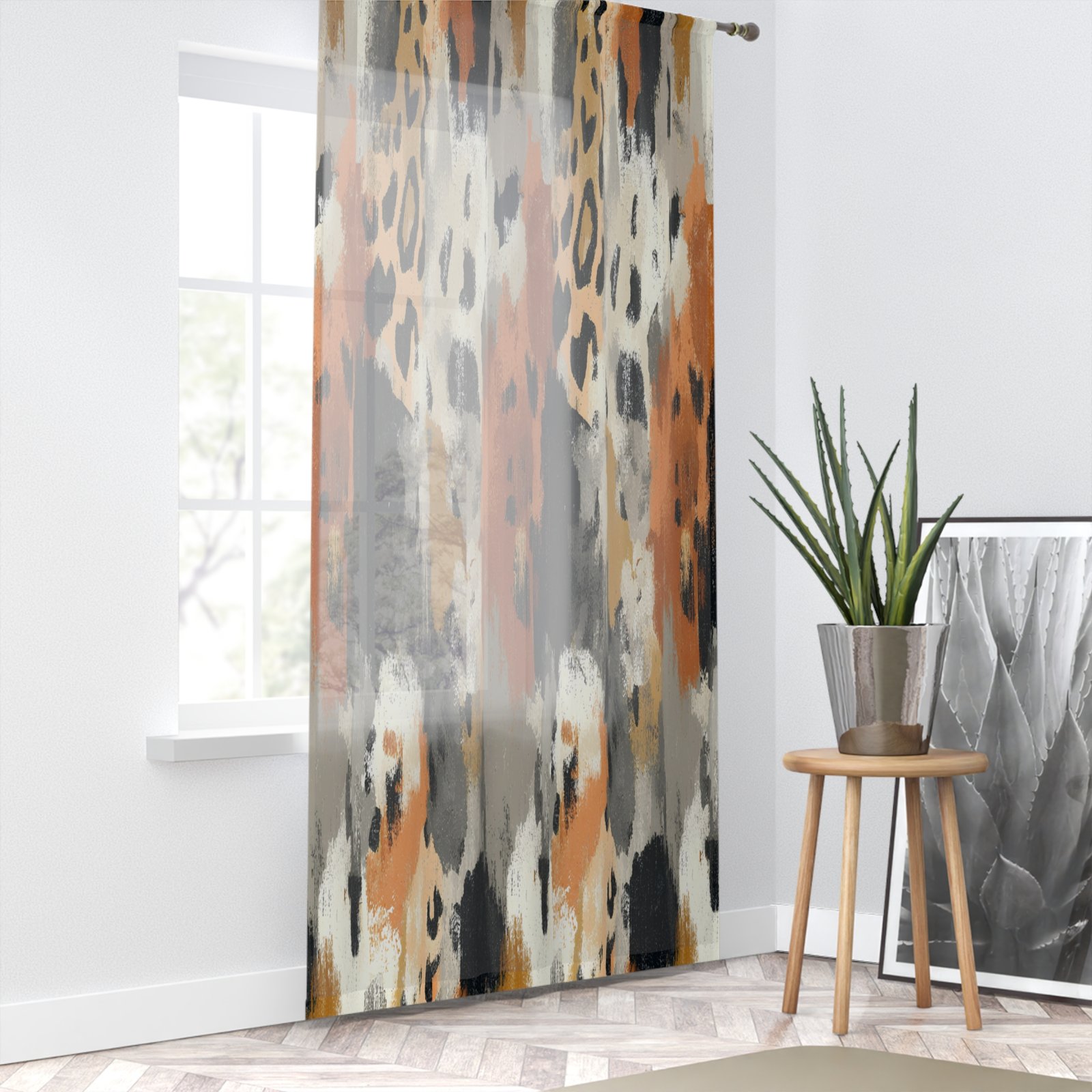 Chic Abstract Window Curtain, Modern Home Decor, Boho Living Room Drapes, Safari Style Window Treatment, Animal Print Curtains