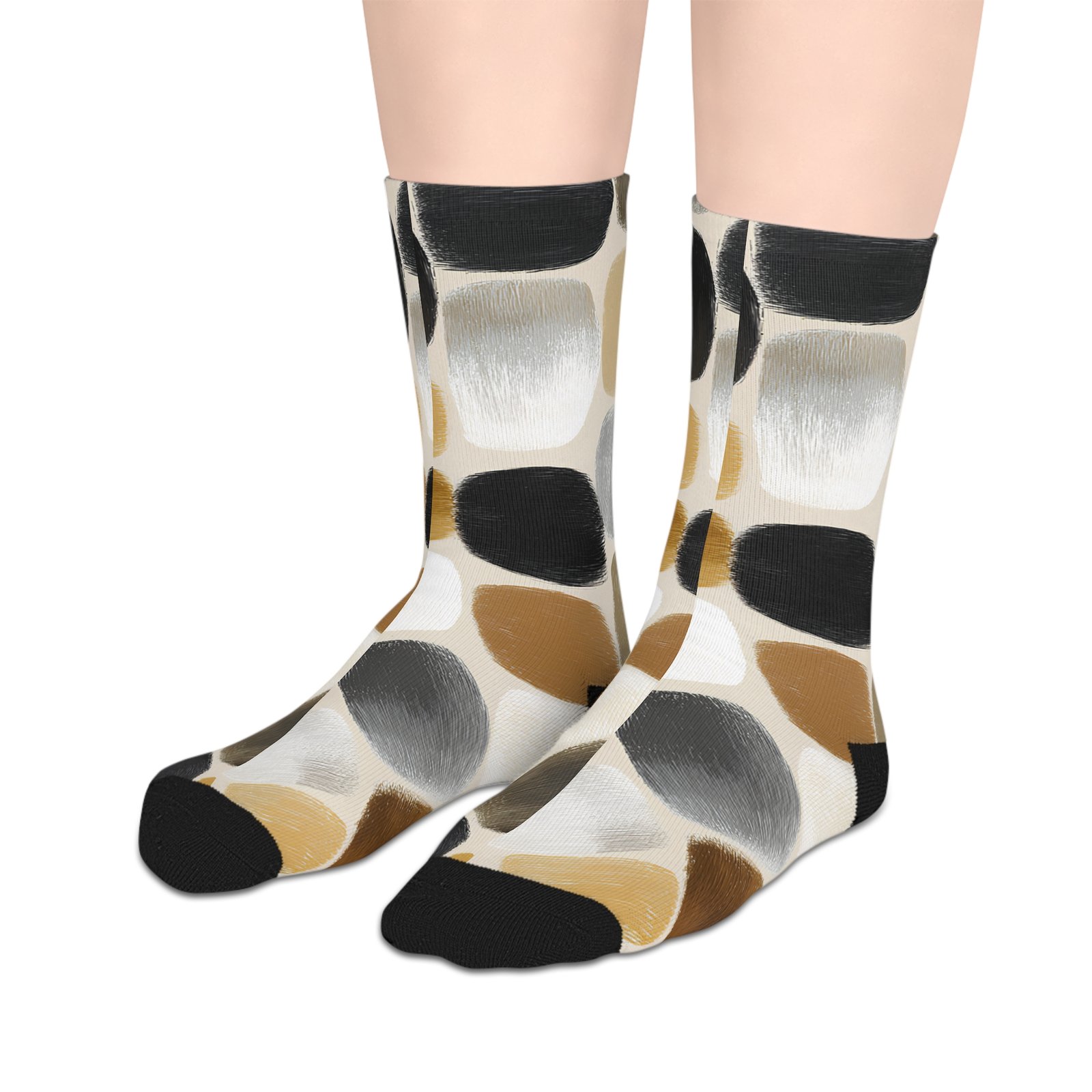 Elevate your everyday style with these uniquely designed mid-length socks. Made from 100% polyester, they offer a soft and lightweight feel, making them perfect for all-day comfort. The all-over print adds a vibrant touch to your attire, while the black heels and toes enhance durability and style. Ideal for fashion enthusiasts, these socks are perfect for casual outings, cozy nights in, or lounging at home. Whether you’re gifting them for a birthday, celebrating a holiday, or just treating yourself, these socks bring a fun element to any wardrobe. Perfect for friends, family, or anyone who loves to express their individuality through fashion!