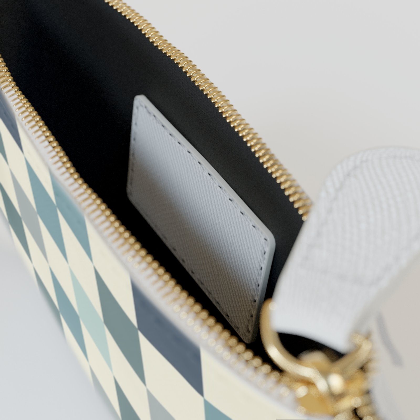 – Durable gold-colored metal zipper for secure closure