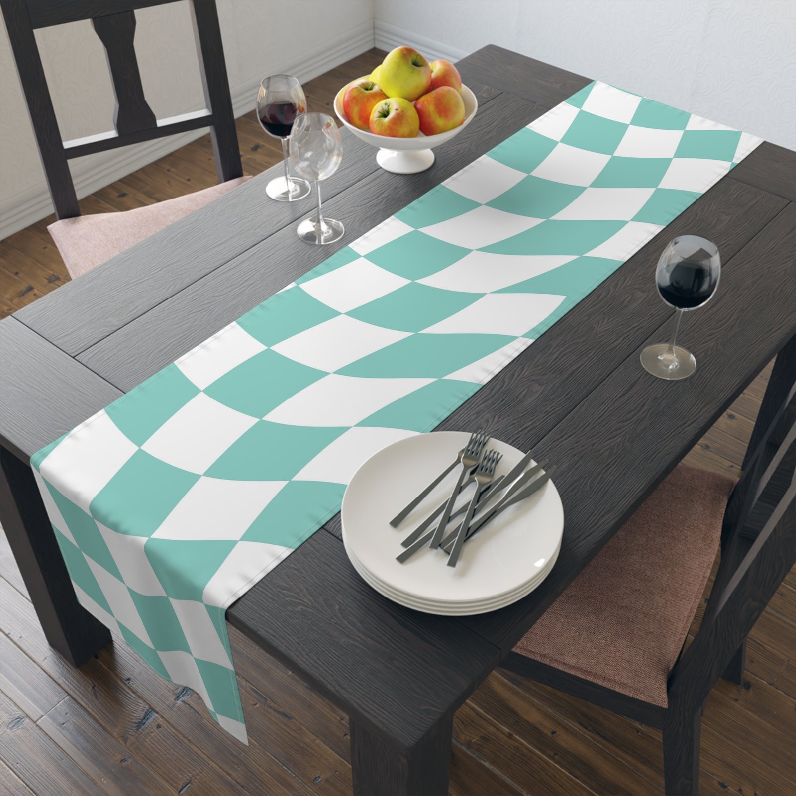 Chic Mint Checkered Table Runner | Elegant Cotton/Poly Decor, Home Styling, Dining Essentials, Party Decor, Modern Table Accessory
