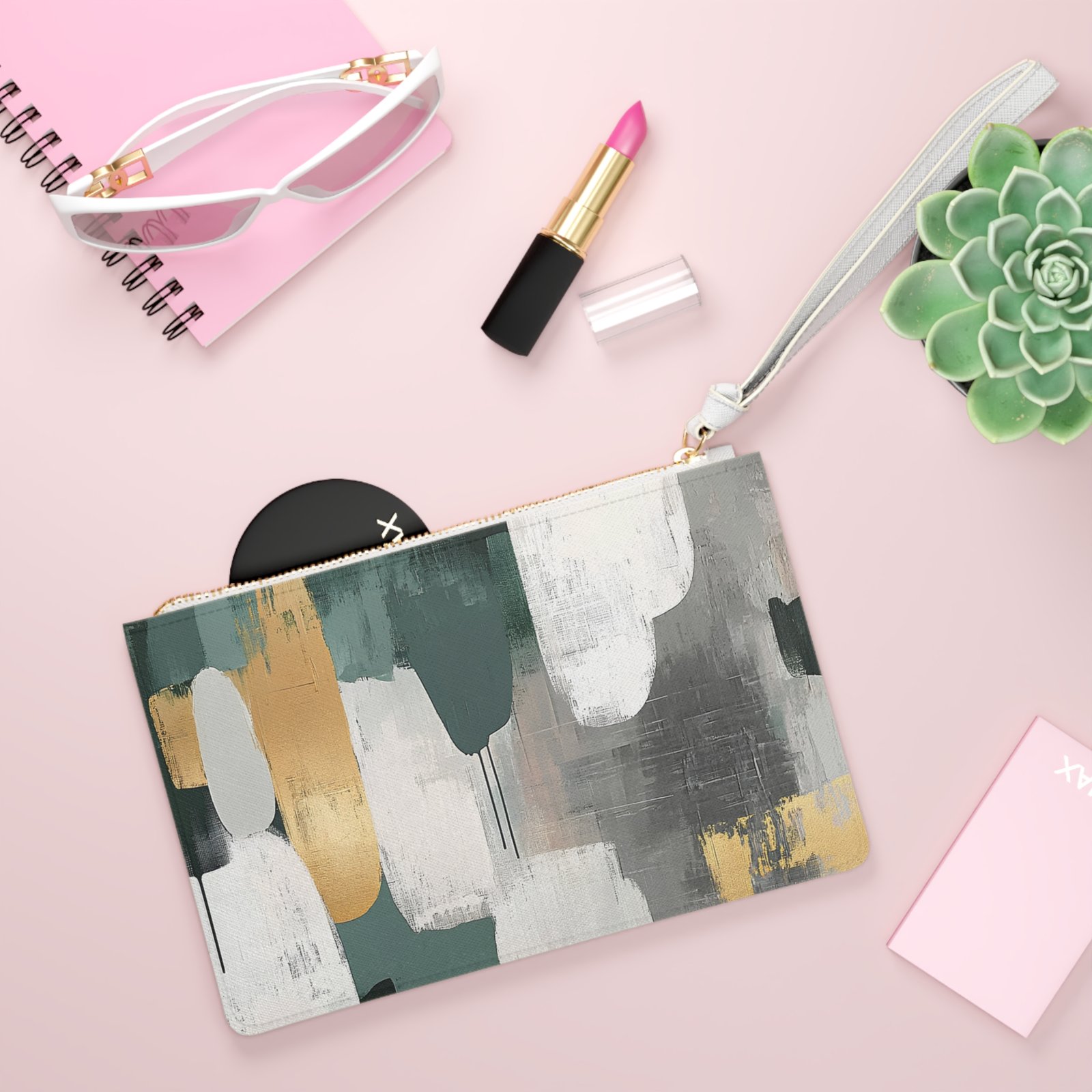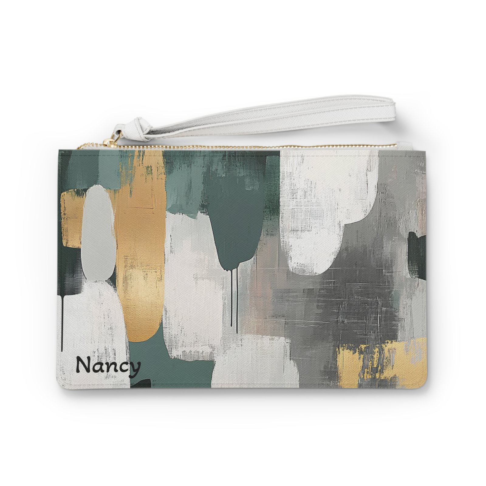 Designed with a loop handle to quickly free your hands, this custom clutch bag is made for the fashionista on the go. It can hold everyday essentials such as a phone, wallet, and keys. It features a zip fastening and a fully lined internal pocket. It is made of vegan leather in the Saffiano pattern finish that was invented by Prada.