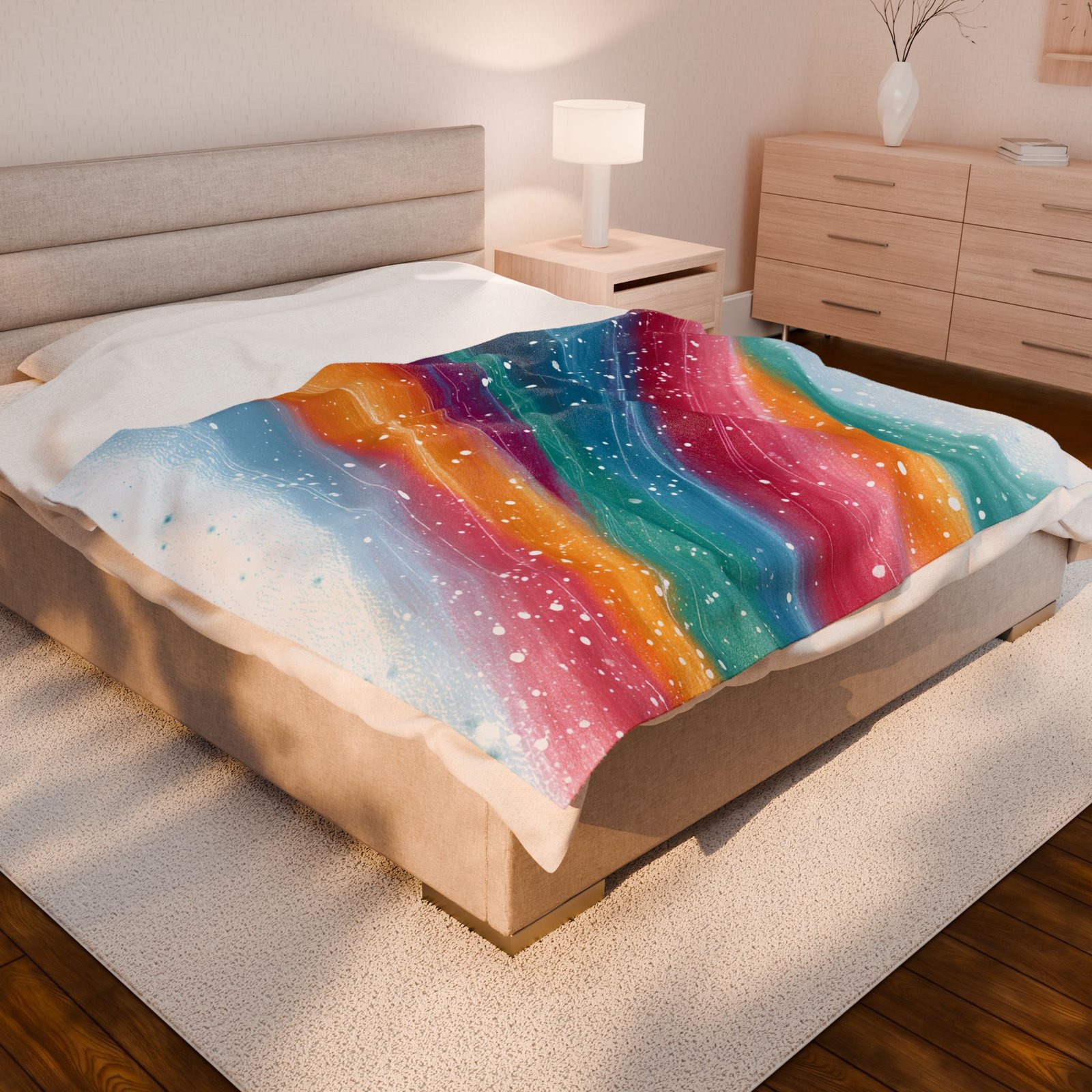 Wrap yourself in comfort with this luxurious Velveteen Plush Blanket. Its vibrant, colorful design adds a touch of artful elegance to any living space, creating a cozy atmosphere perfect for lounging or entertaining. Made specifically for adults, this blanket is ideal for snuggling up on chilly evenings or as a stylish throw for your sofa. It’s a wonderful gift for housewarmings, birthdays, or cozy holiday gatherings, sure to delight anyone who appreciates comfort and style. Perfect for those who love to create a serene and inviting home environment, bringing warmth and color to their lives.