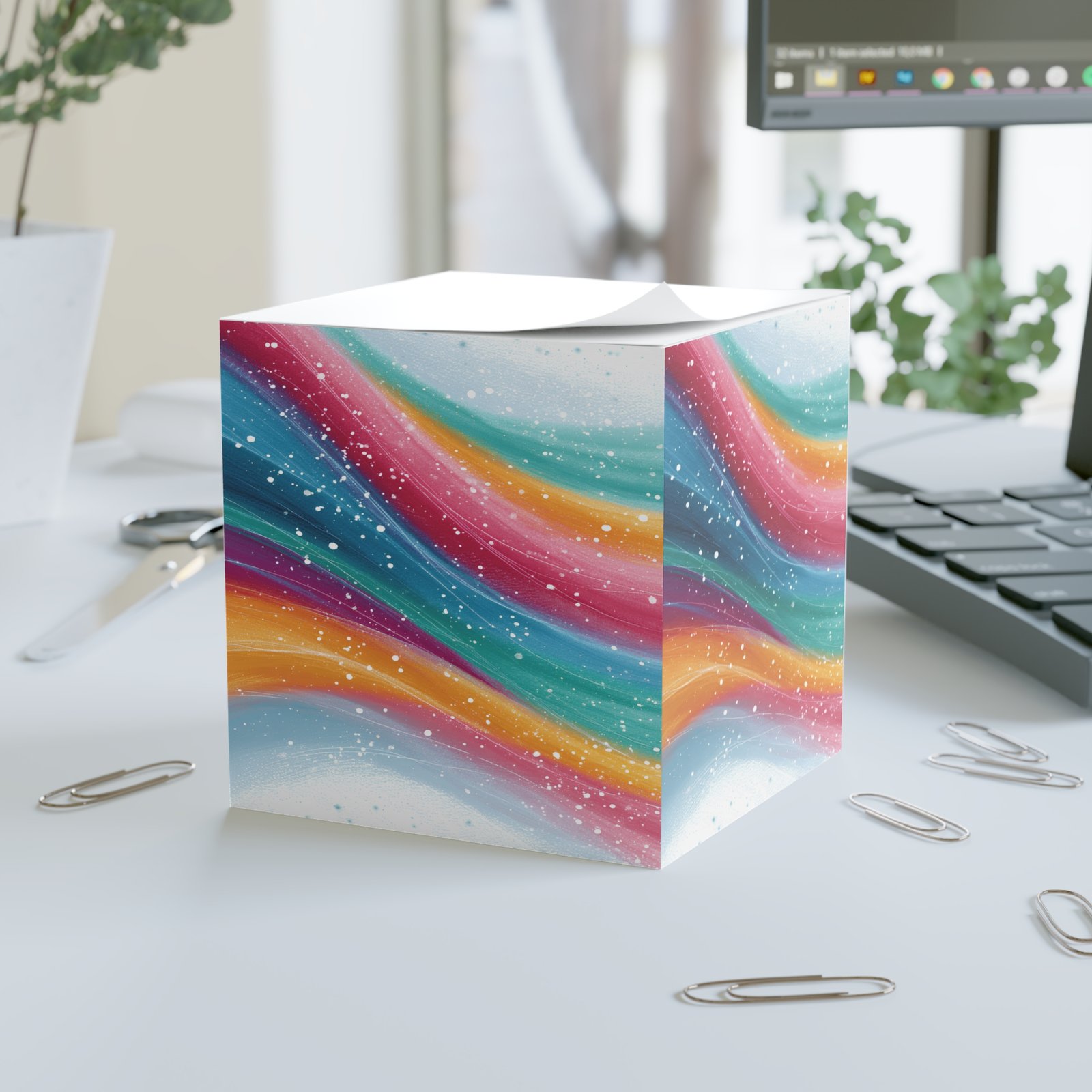 Introducing a vibrant and stylish Note Cube that brightens up any workspace or study area. With its eye-catching design, this note cube inspires creativity and positivity, making it the perfect addition to your desk. It’s ideal for students, professionals, or anyone who loves to keep their thoughts organized in a fun way. Perfect for back-to-school season, office gifts, or even as a unique birthday gift for friends and family. Let this colorful note cube spark joy and motivation in your daily note-taking and reminders!