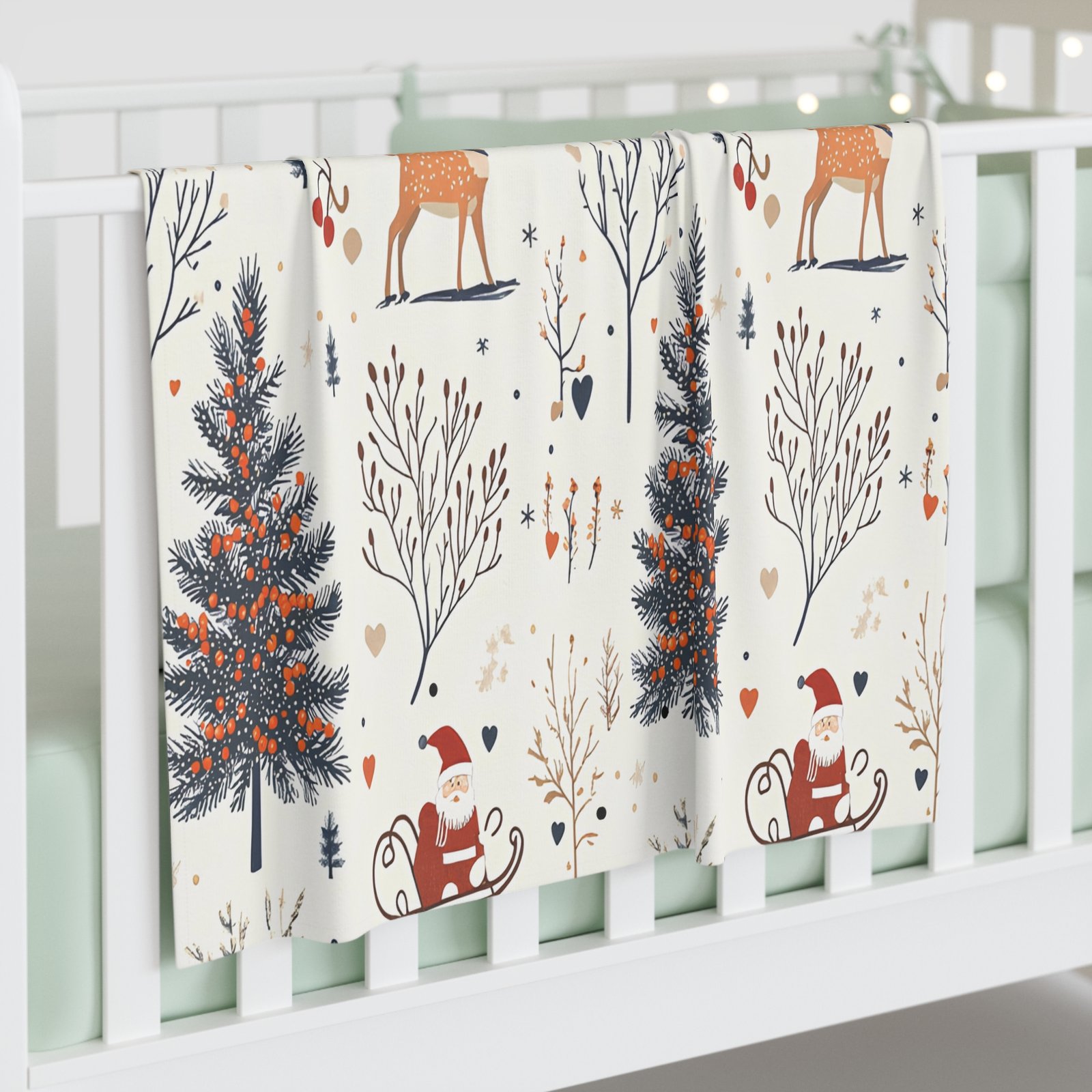 Embrace the warmth and comfort of this beautifully designed Baby Swaddle Blanket. Perfect for snuggling your little one, this blanket is made from smooth 100% jersey polyester, ensuring softness against delicate skin. Adorned with a charming winter woodland scene featuring reindeer and festive trees, it brings a cozy, joyful vibe ideal for the holiday season. This swaddle blanket is perfect for new parents looking to add a touch of seasonal cheer to their baby’s nursery or for gifting during baby showers, Christmas, or any winter celebration. It’s not just a functional item – it’s a delightful decorative piece that fits beautifully into your family’s cherished moments.