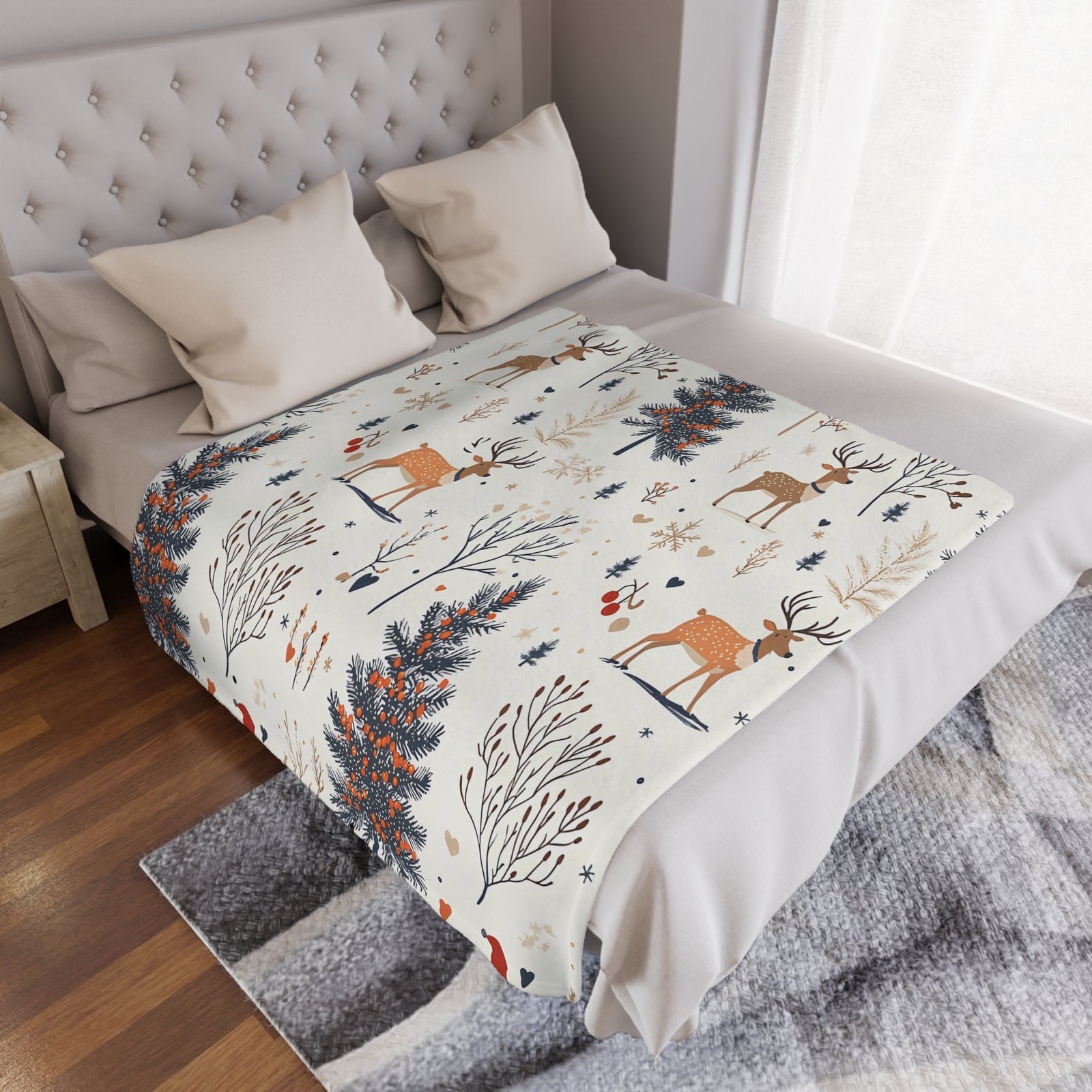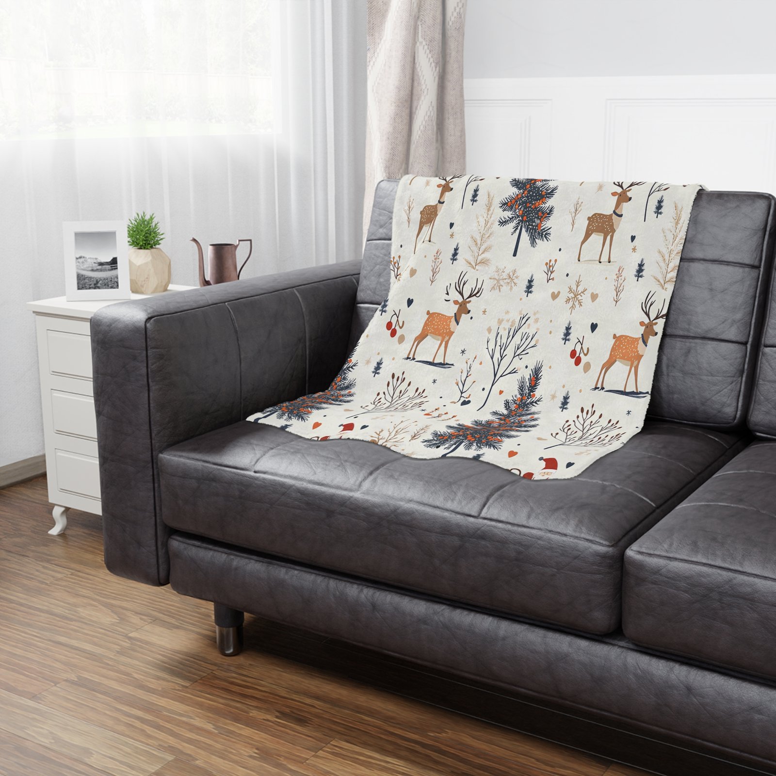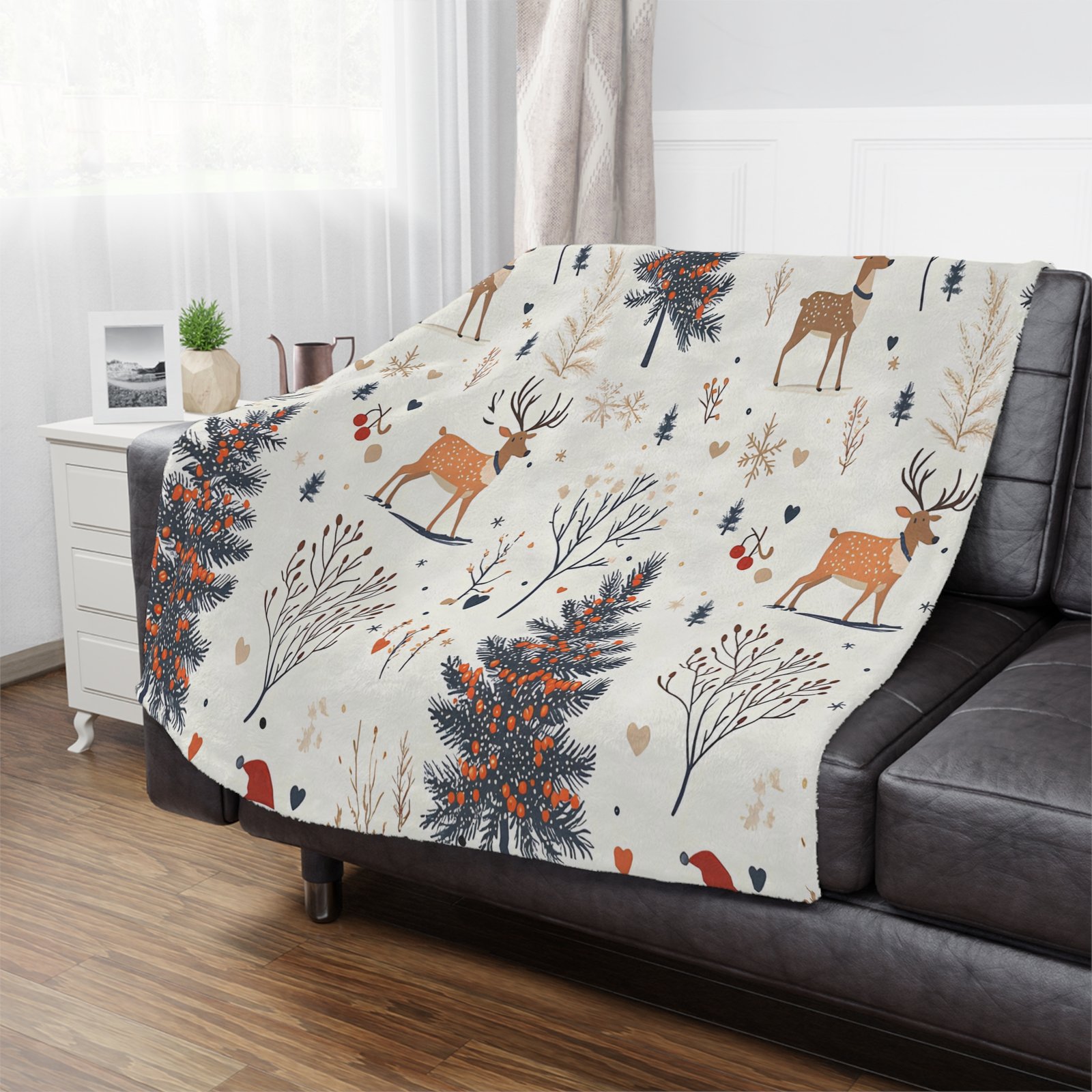 Wrap yourself in warmth and whimsy with this cozy Minky Blanket. Adorned with delightful woodland scenes featuring charming deer and evergreen trees, this blanket exudes a comforting vibe perfect for chilly evenings. Imagine snuggling up on the couch with a hot cocoa in hand, creating cherished memories during family movie nights or festive gatherings. Ideal for all ages, this versatile blanket makes a thoughtful gift for birthdays, holidays, or just because. Bring a bit of nature indoors while celebrating the joy of cozy comforts. Whether draped over your couch or used as a nursery accent, this blanket invites warmth and cheer into any space.