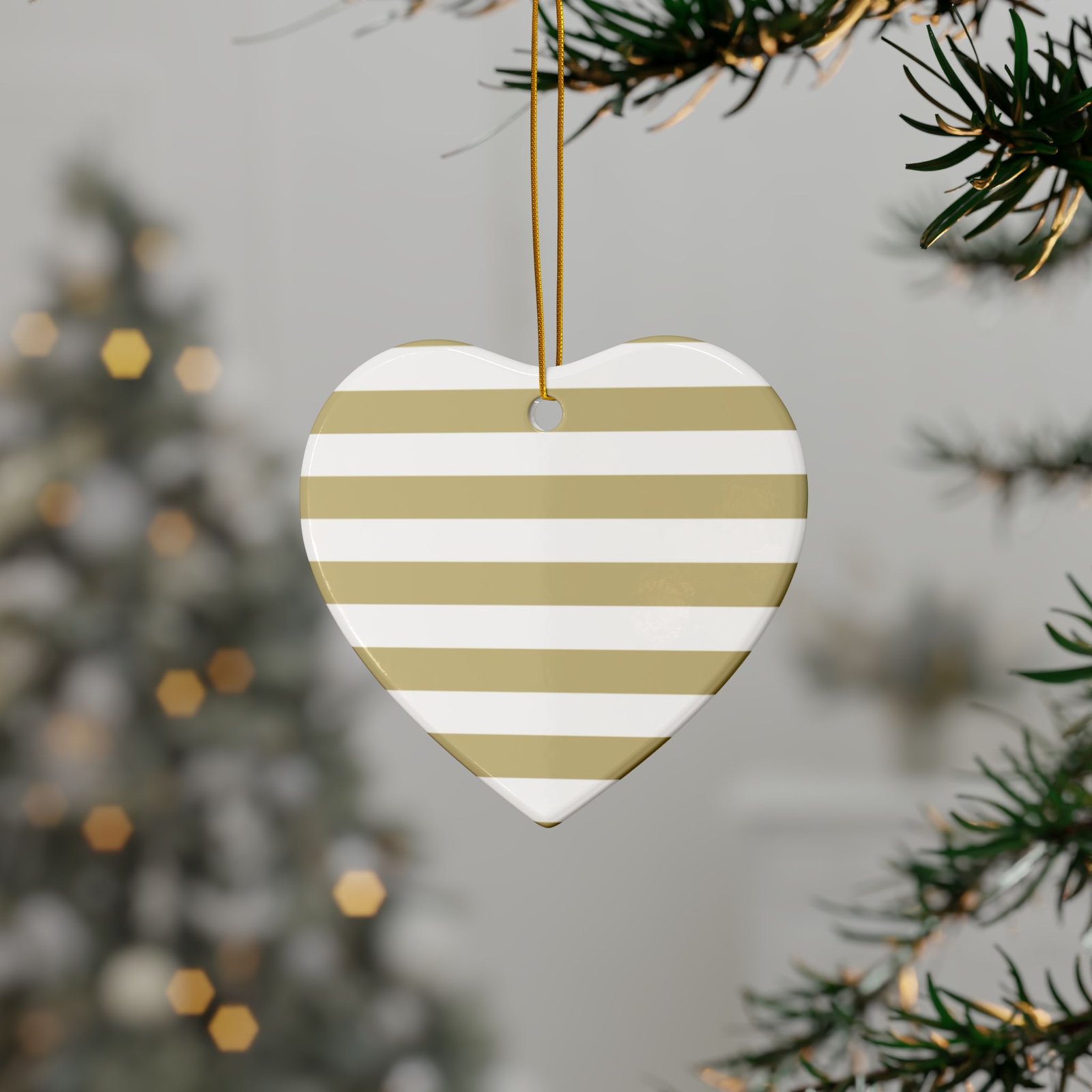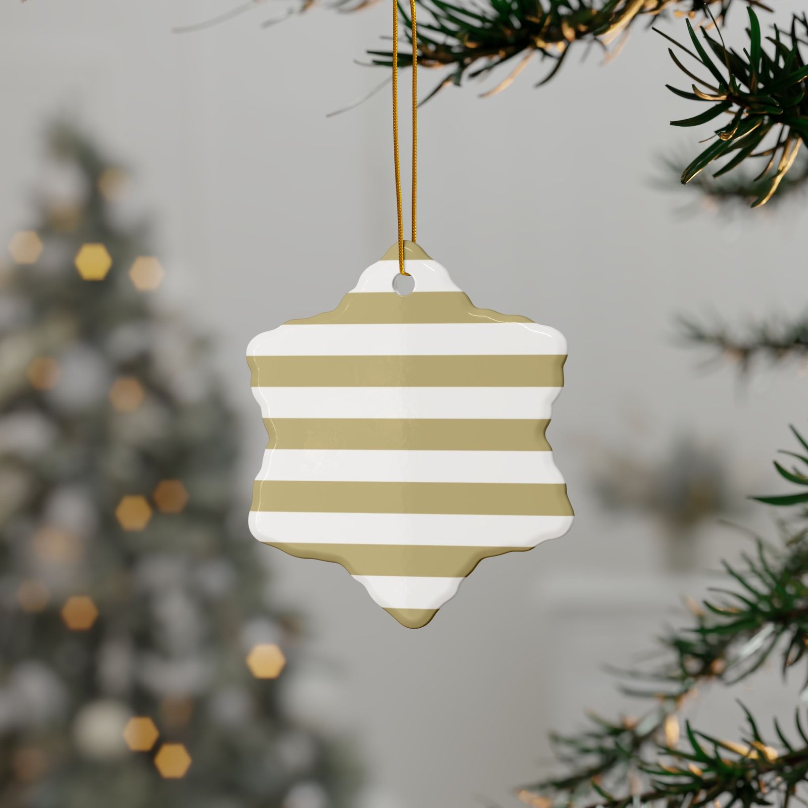 Elegant Ceramic Ornaments – Perfect for Holidays, Gift Giving, Home Decor – 2-Sided Print, Set of 1, 3, 5, or 10 – Striped Design