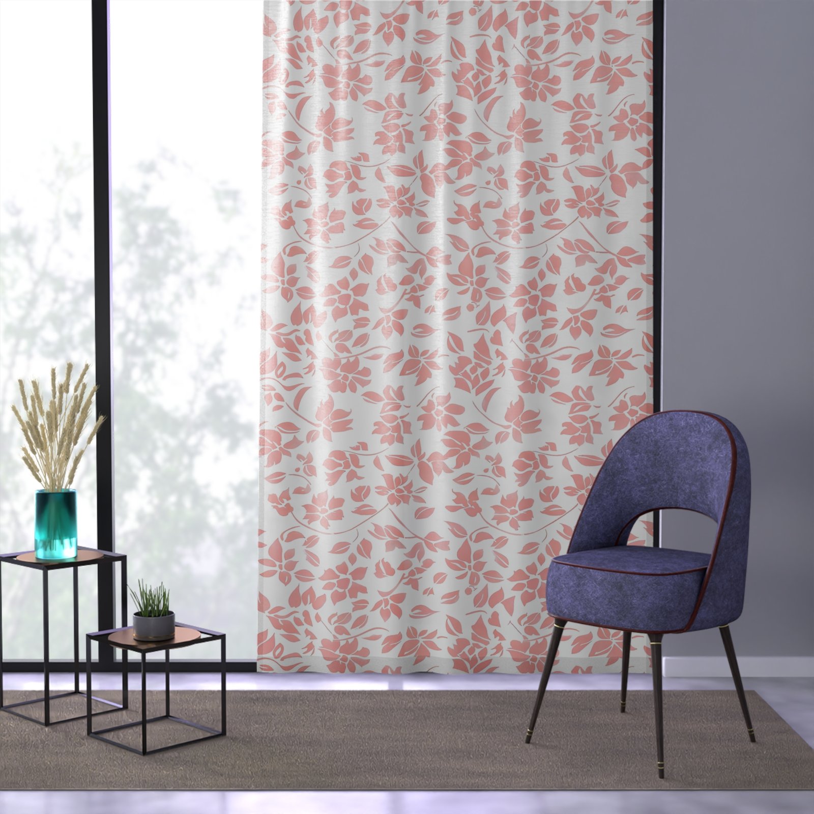 Elegant Floral Window Curtain – Light Filtering Drapery, Living Room Decor, Home Aesthetic, Privacy Curtain, Spring Inspired