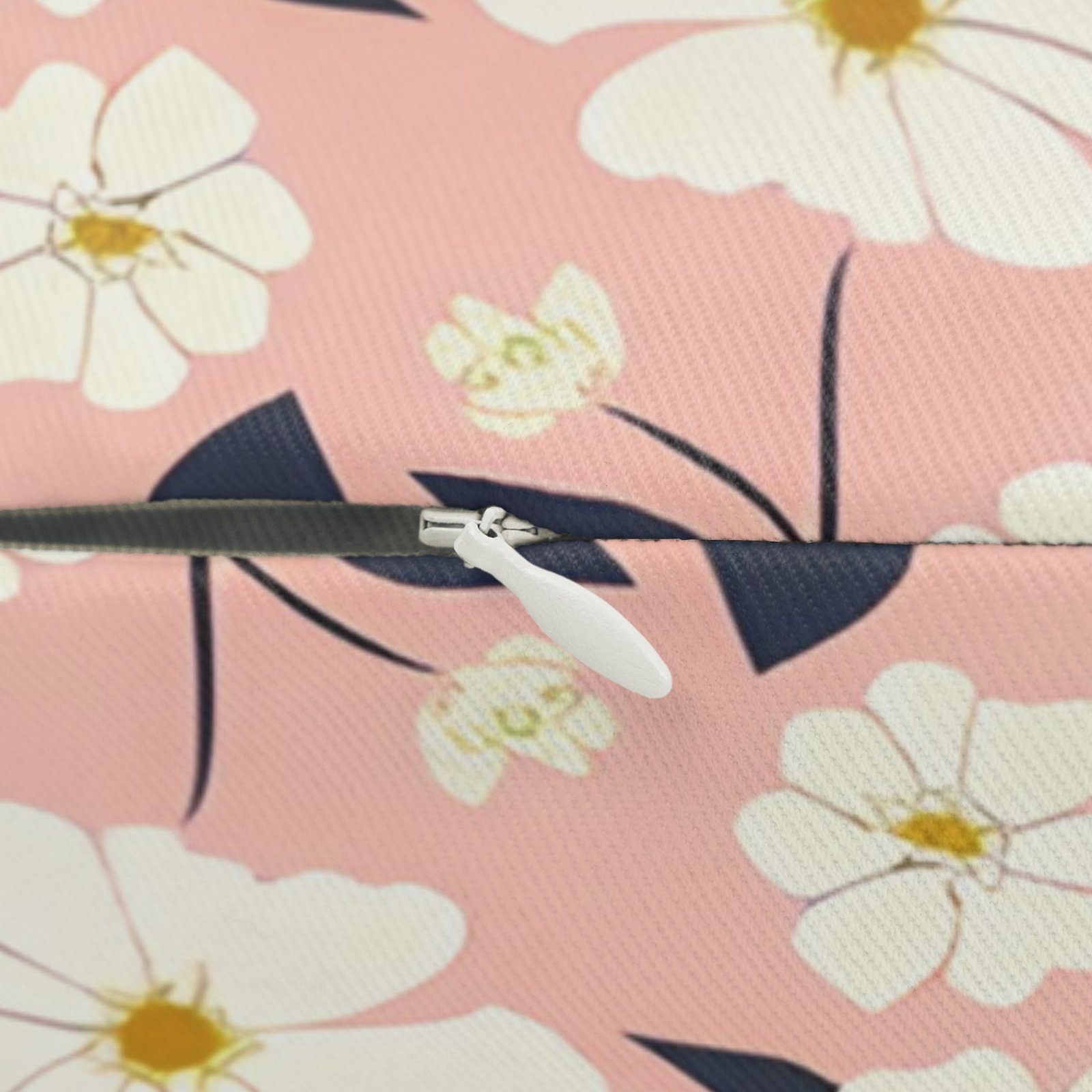 – Beige zipper complements various designs.