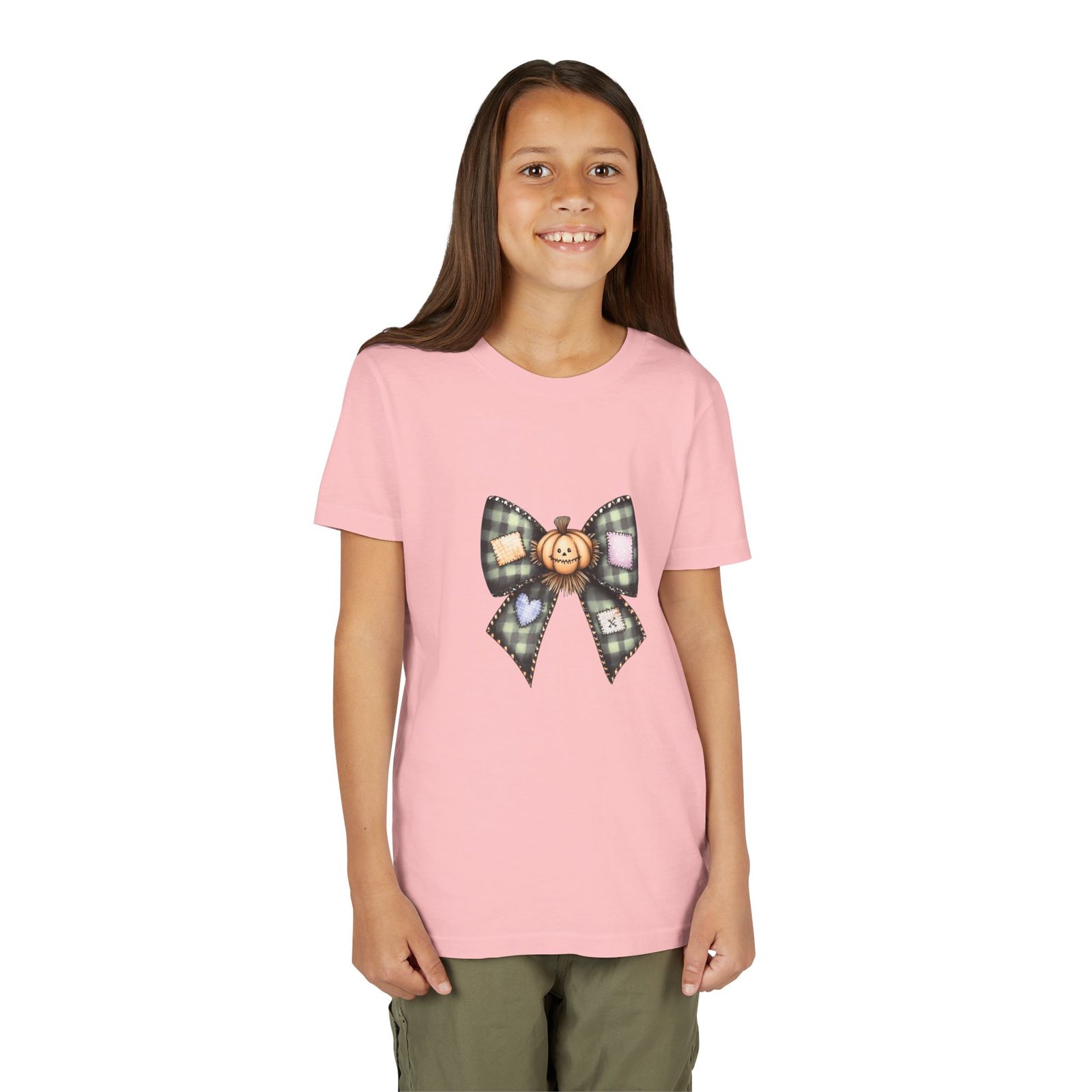 This Youth Short Sleeve Tee is perfect for children who love to express their individuality. Featuring a charming design with a playful bow and pumpkin motif, it brings a fun vibe that’s great for any season. Soft and lightweight, this tee is designed for comfort, making it ideal for everyday wear, school, or special events. Whether they’re heading to a birthday party or a family gathering, this tee will keep them stylish and cozy. It’s a wonderful gift for kids who enjoy celebrating festivities like Halloween, Thanksgiving, and even casual summer outings. Made sustainably, the tee reflects a commitment to ethical fashion, appealing to parents who value quality and responsibility in their children’s clothing.