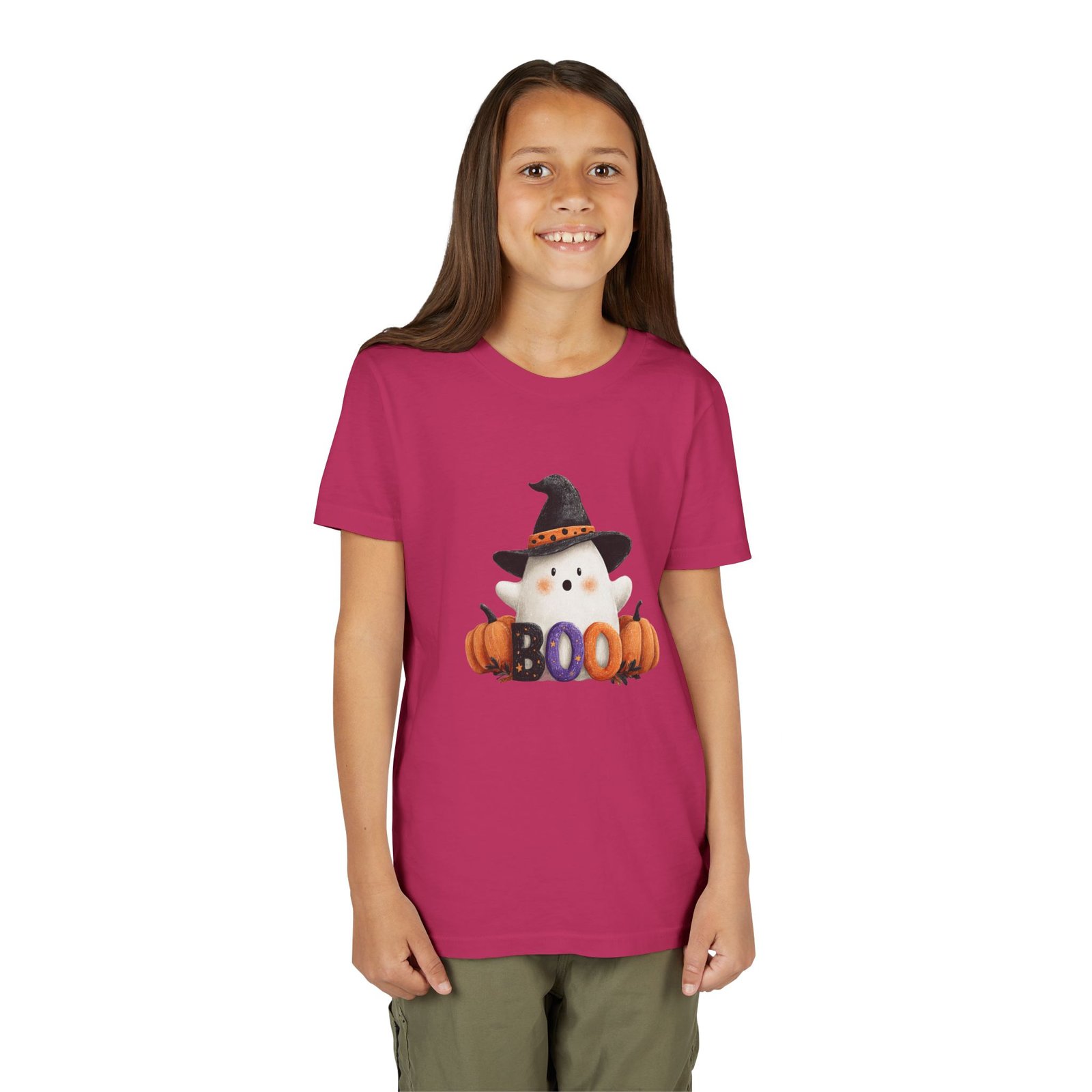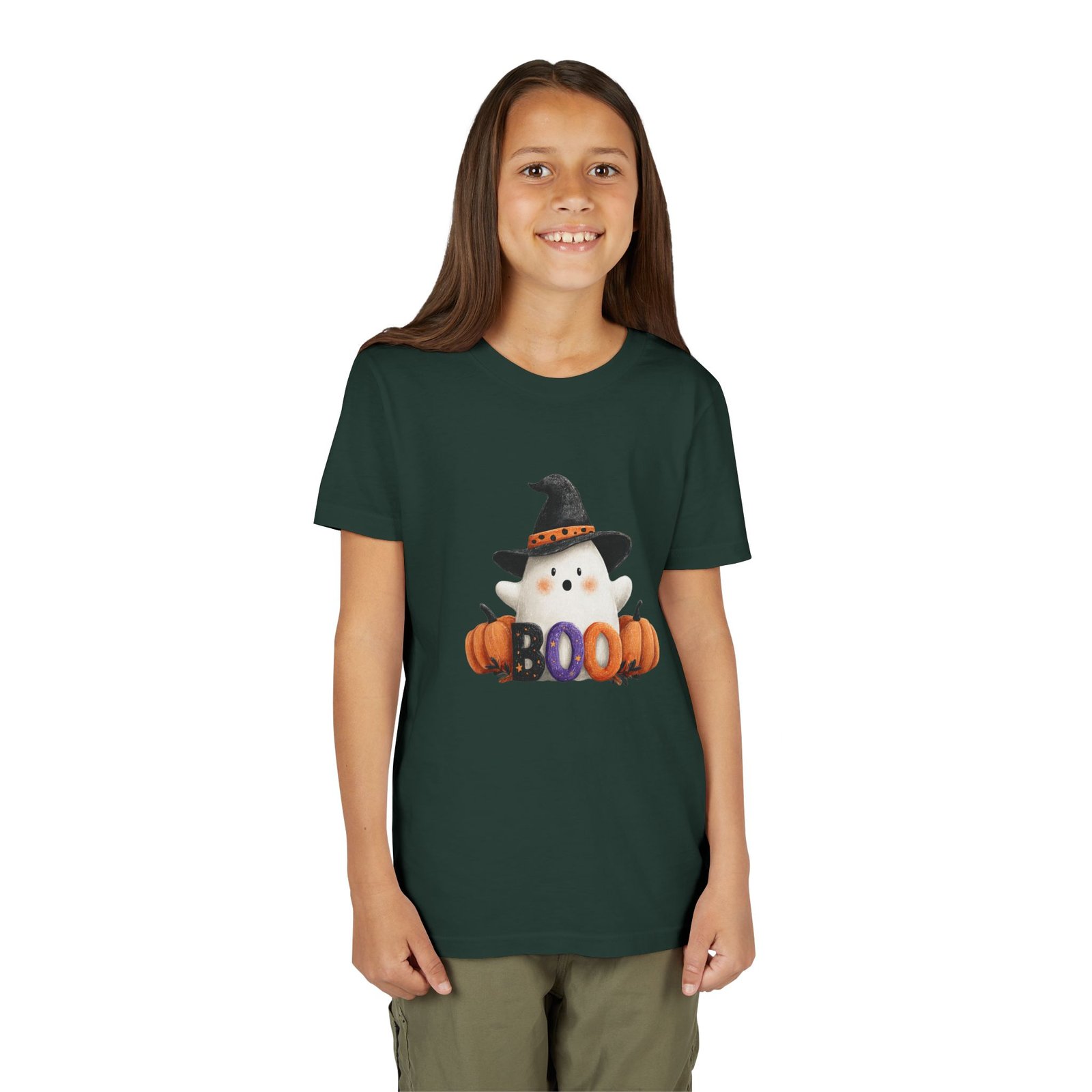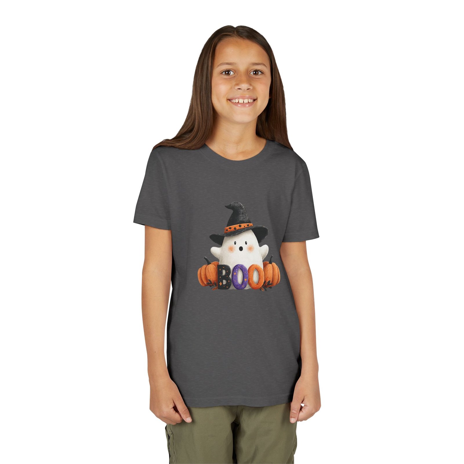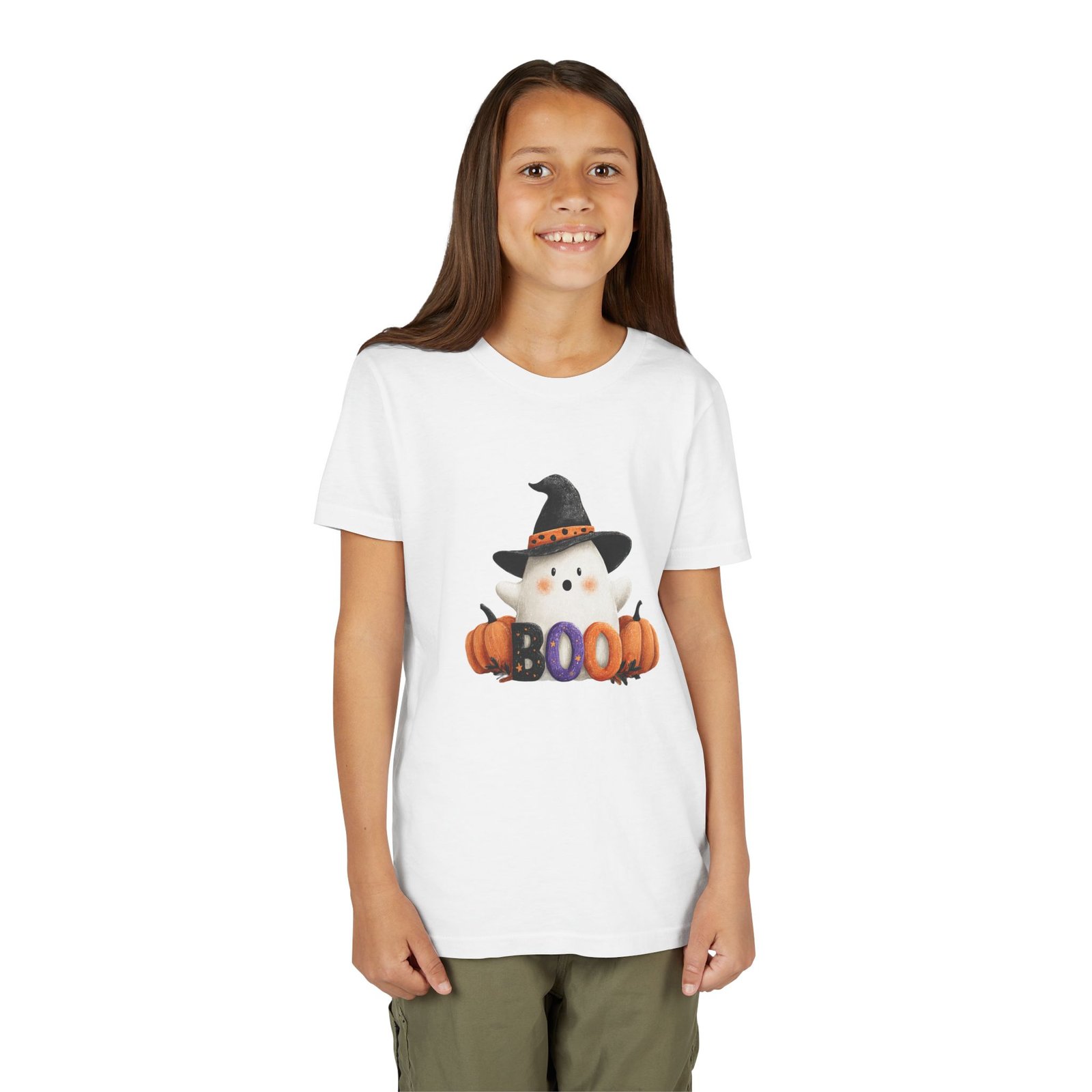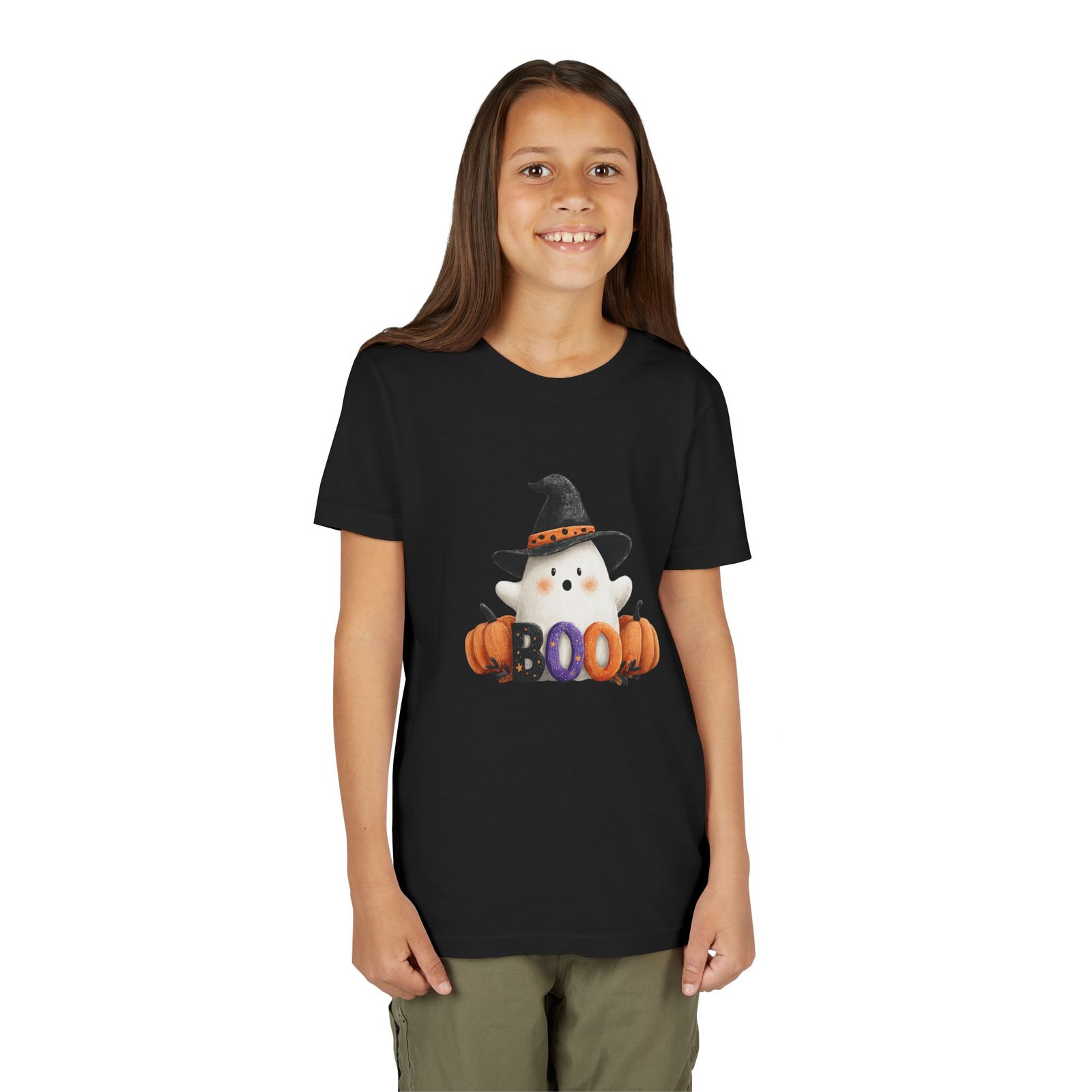 Introducing the perfect addition to your child’s wardrobe: a Youth Short Sleeve Tee that combines comfort and style with a playful, seasonal twist. Adorned with a friendly ghost and festive pumpkins, this tee captures the whimsical spirit of Halloween. Whether your child is trick-or-treating, attending a fall festival, or simply enjoying a festive day at school, this shirt brings joy and excitement to every autumn occasion. Designed for kids who love to express their fun side, it effortlessly complements any casual look, ensuring they remain stylish and comfortable. Ideal for Halloween parties, school events, or cozy family gatherings, this tee is a must-have for every little ghost and goblin!