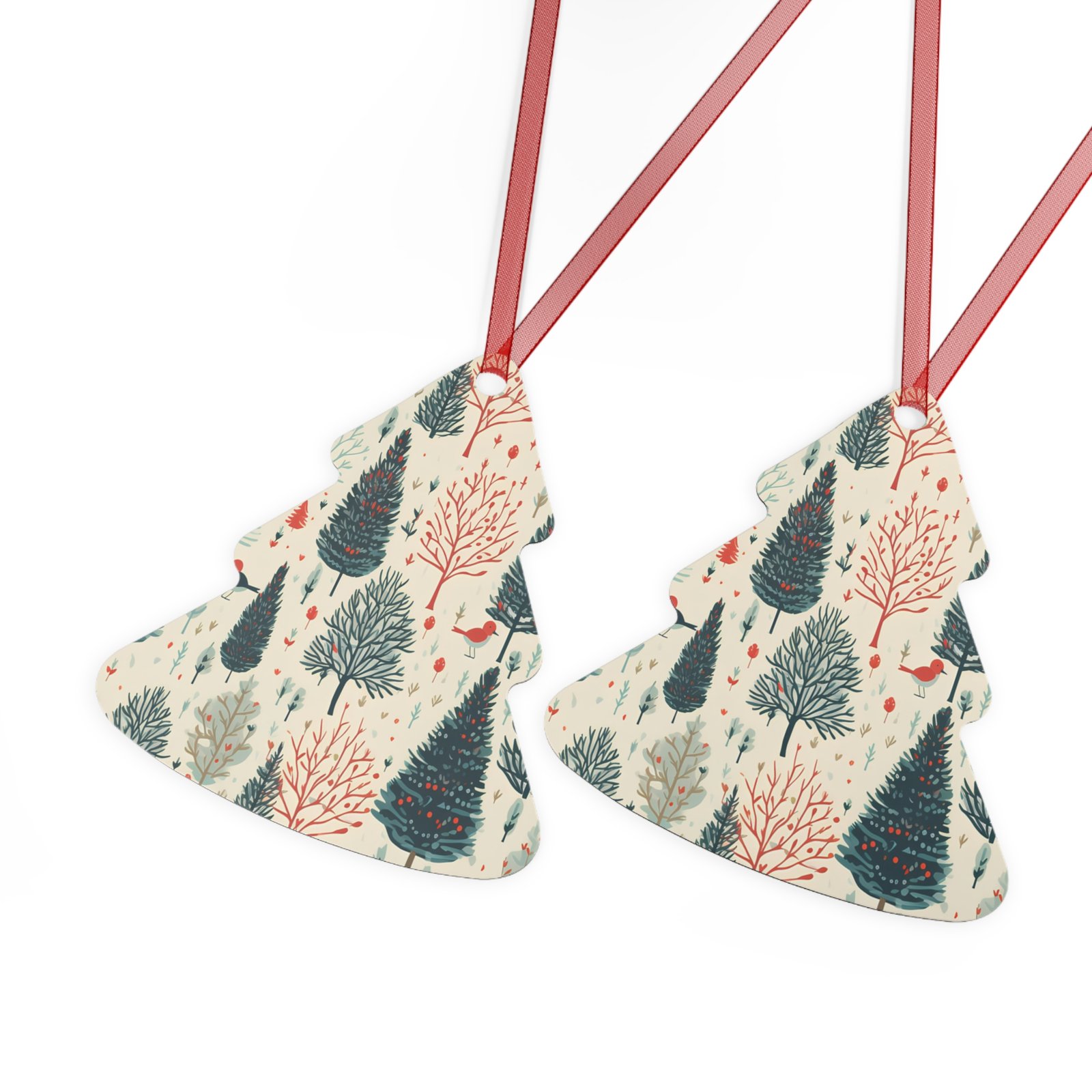 Metal Christmas tree ornaments are durable and will bring holiday cheer for years to come. Print your festive designs on both sides of the white aluminum base, and we’ll print them in high resolution with a glossy finish. Their surface is scratch and chip-resistant, so they can be stored together in the famous Christmas decoration box. Choose any or all of these four shapes – bell, tree, round, and oval. Note that there’s one ornament per pack, and it already comes with a separate red ribbon for hanging.