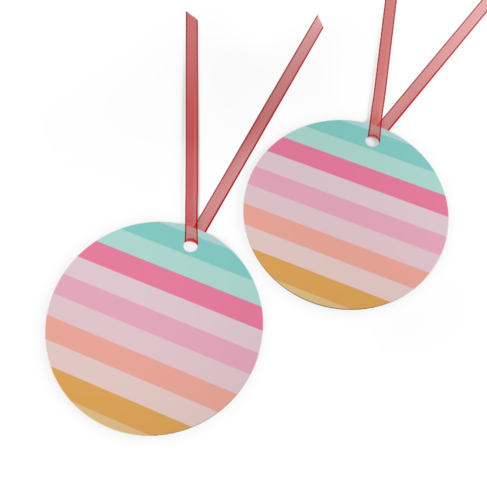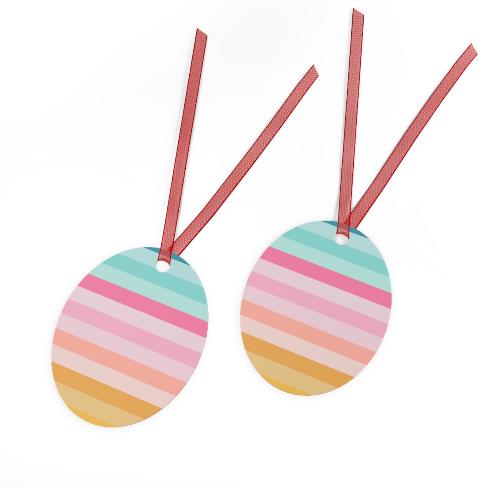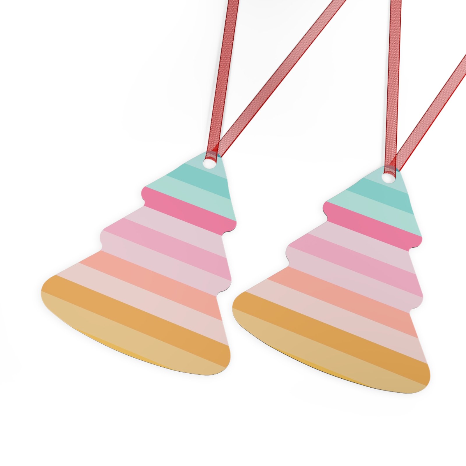 Metal Christmas tree ornaments are durable and will bring holiday cheer for years to come. Print your festive designs on both sides of the white aluminum base, and we’ll print them in high resolution with a glossy finish. Their surface is scratch and chip-resistant, so they can be stored together in the famous Christmas decoration box. Choose any or all of these four shapes – bell, tree, round, and oval. Note that there’s one ornament per pack, and it already comes with a separate red ribbon for hanging.