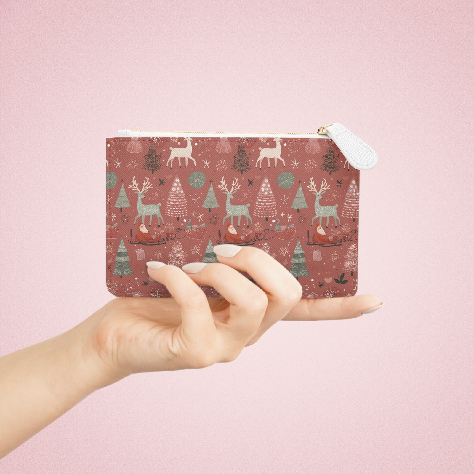 Designed to be chic and highly portable, this mini personalized clutch bag is made for the fashionista on the go. It can hold everyday essentials such as a wallet or keys. It features a zip fastener and it is made of vegan, cruelty-free leather that can accommodate your custom designs on both sides.