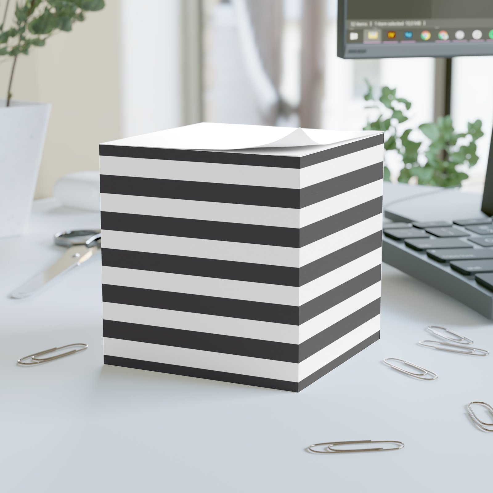 When utility meets clever design, the custom sticky note cube is born. This sticky note cube features 700 sticky sheets for you to conveniently take notes on. Around the edges, you can print any of your favorite photos, custom logos, or slogans so that it looks right at home on any desk or office space. Each cube measures 3.37″ (W) by 3.5″ (H).