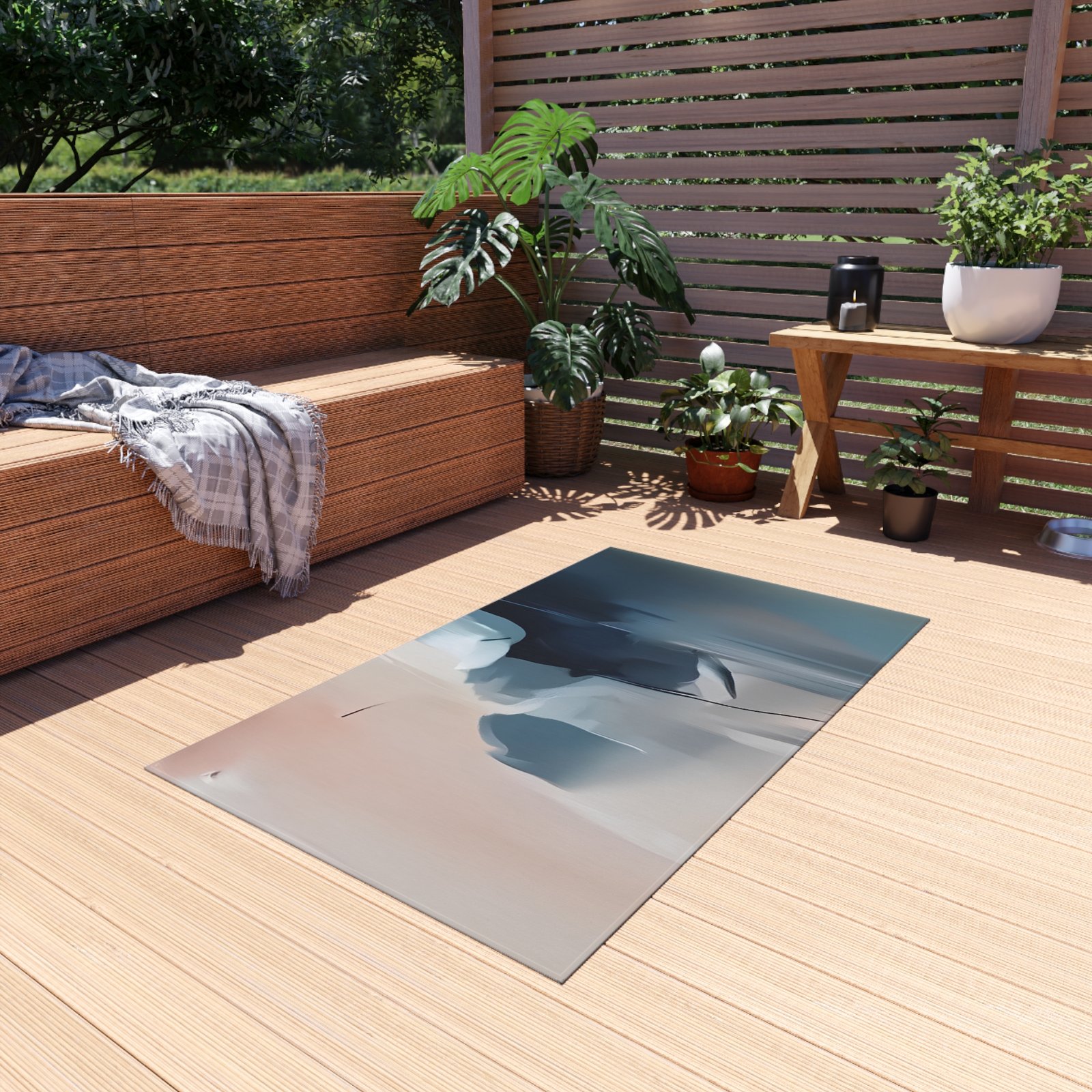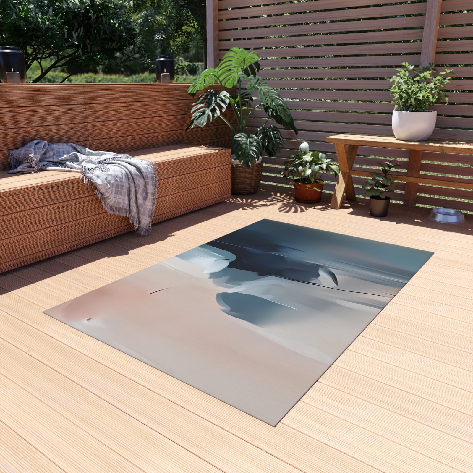 It might seem a bit unusual at first—placing one outside, but non-slip outdoor rugs bring alfresco chilling to a whole new level of comfort. These rugs come in many different sizes to fit any patio or porch. Made from polyester chenille fabric— they’re very durable, breathable, and dry quickly.