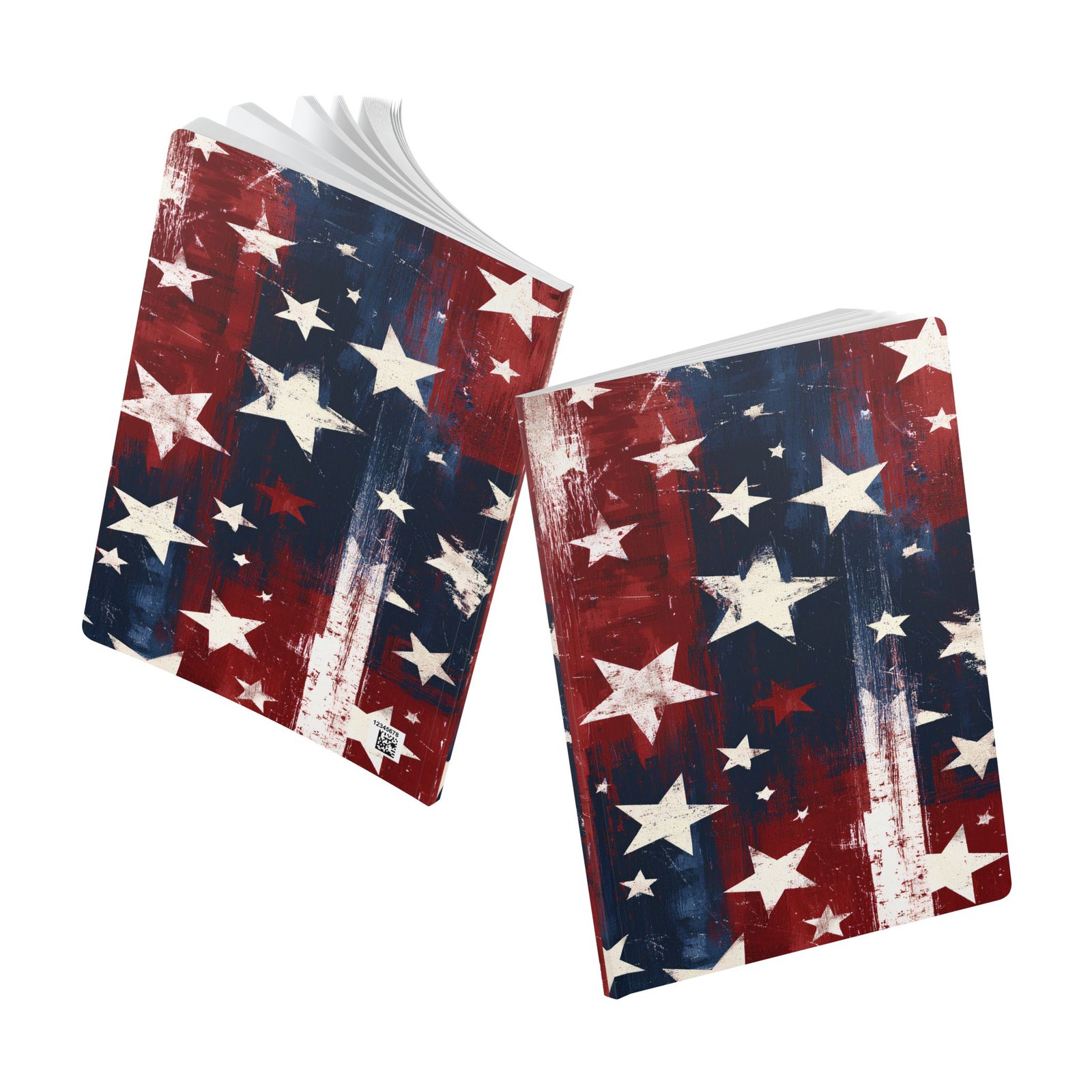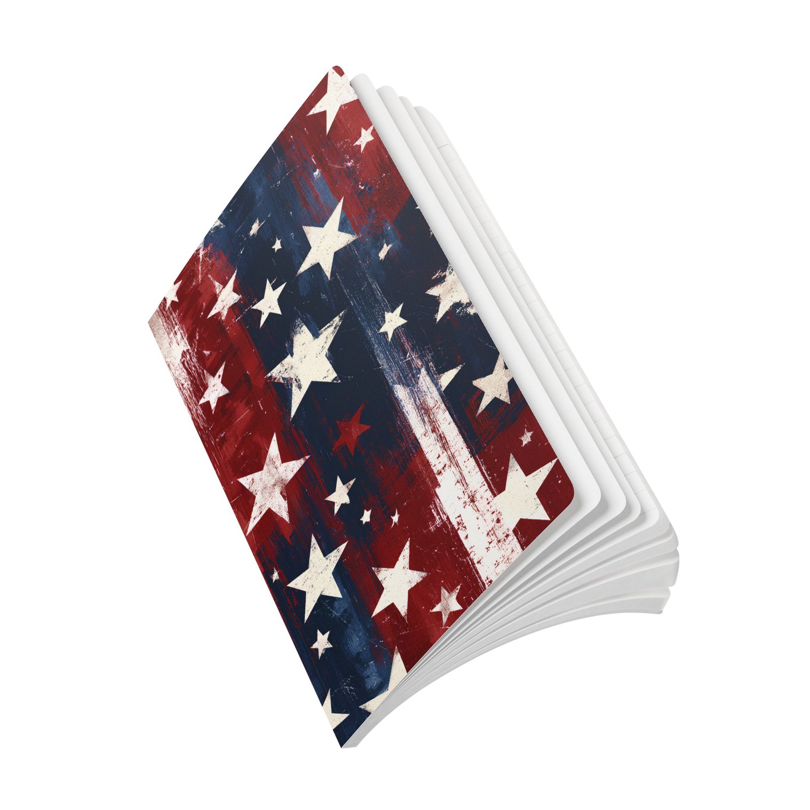 This softcover journal brings bold, painterly Americana to everyday pages. The cover features layered brushstrokes in deep indigo and rustic red, scattered with distressed stars for a lived-in, vintage-art feel. Inside, bright, high-quality 80 lb (120 gsm) pages take ink and pencil beautifully; choose 100 or 200 pages to match your note-taking rhythm. Perforated sheets make it easy to tear out lists, sketches, or letters without damaging the binding. Rounded corners and a soft satin finish give the book a tactile, comfortable presence you’ll want to carry along to markets, barbecues, study sessions, or quiet evenings on the porch. A few customizable inner spreads let you add names, dates, or prompts to make this journal feel personal and ready for the stories you’ll fill it with.