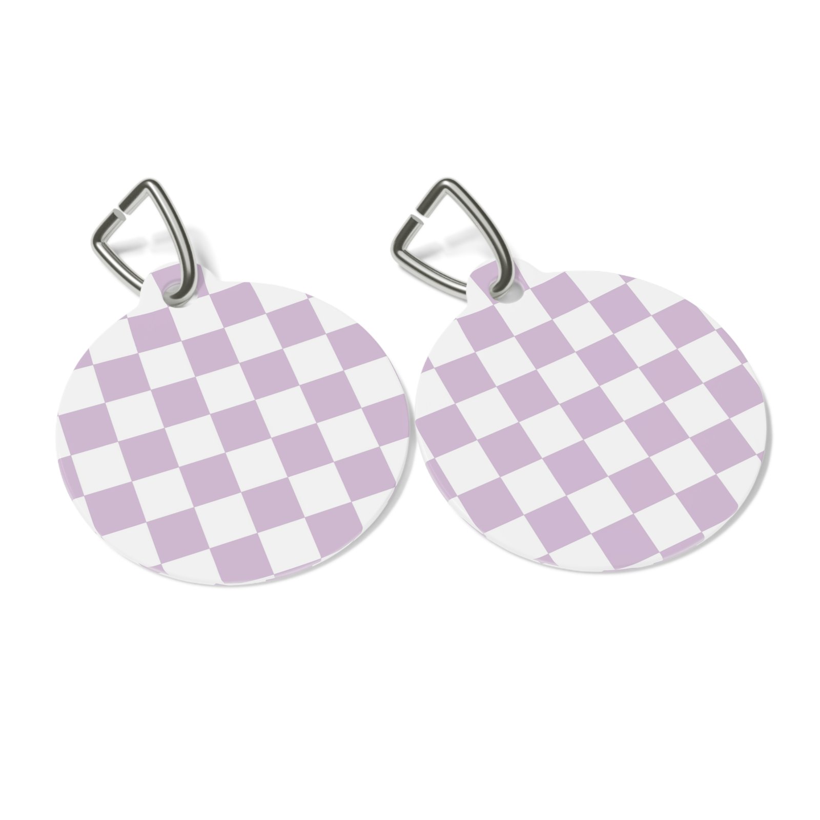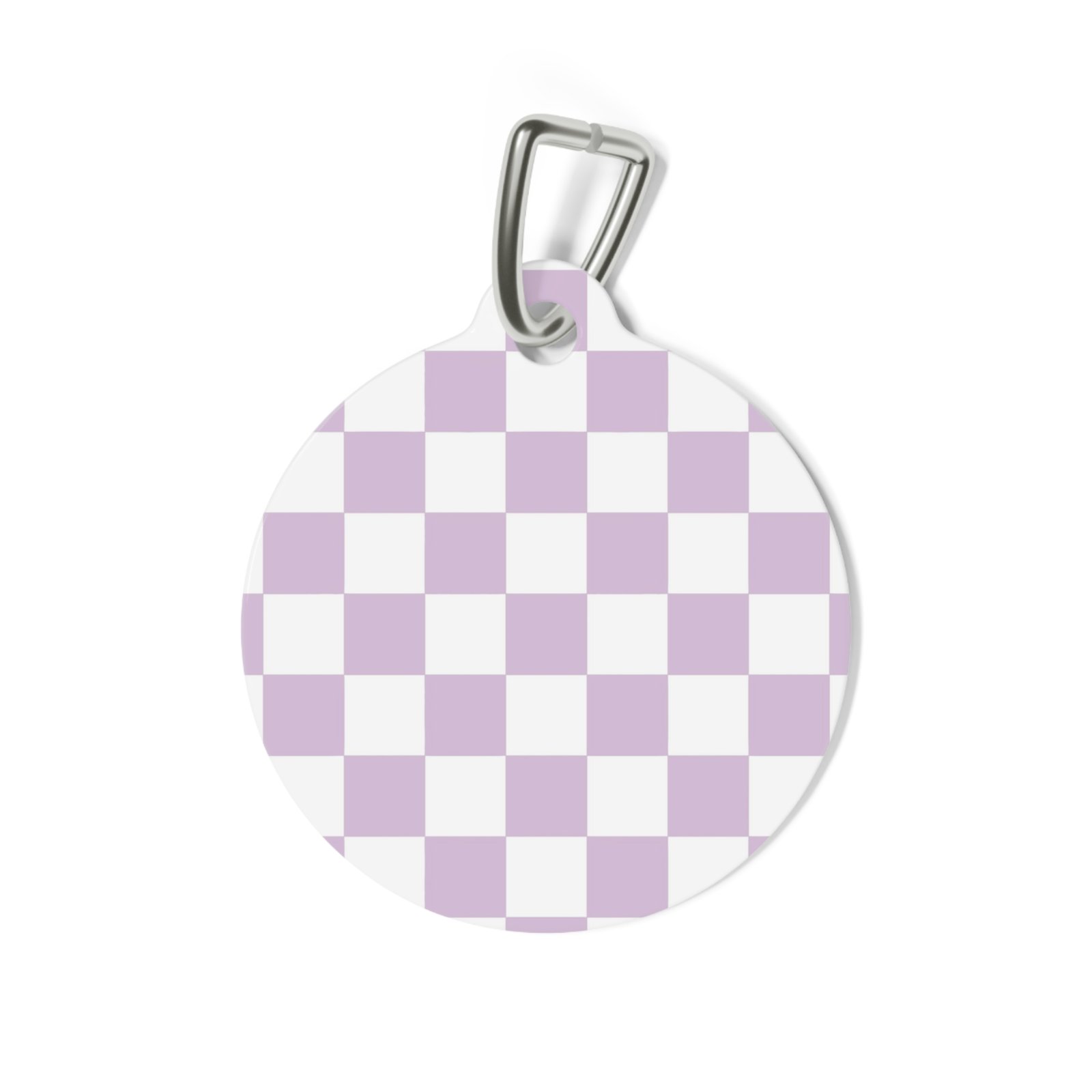 Personalized pet tags provide a fresh way to spice up a furry friend’s collar. The tag and clip are both made of metal. This increased durability comes in handy, as collar pieces can snag on brush, corners, etc. The base color is white, giving designs an even printing surface. Both sides are flattened.