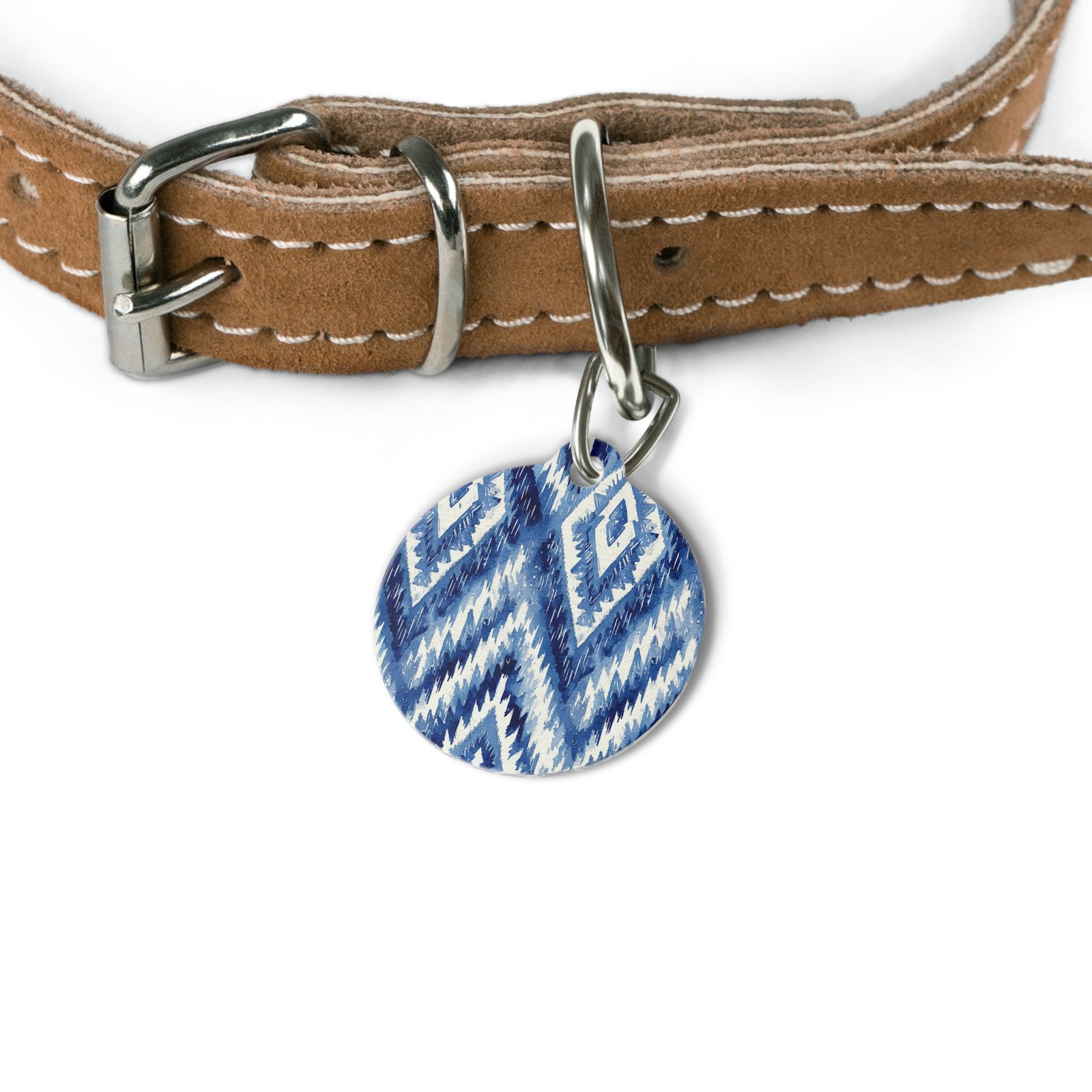 Personalized pet tags provide a fresh way to spice up a furry friend’s collar. The tag and clip are both made of metal. This increased durability comes in handy, as collar pieces can snag on brush, corners, etc. The base color is white, giving designs an even printing surface. Both sides are flattened.