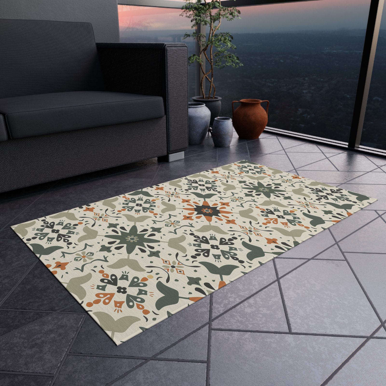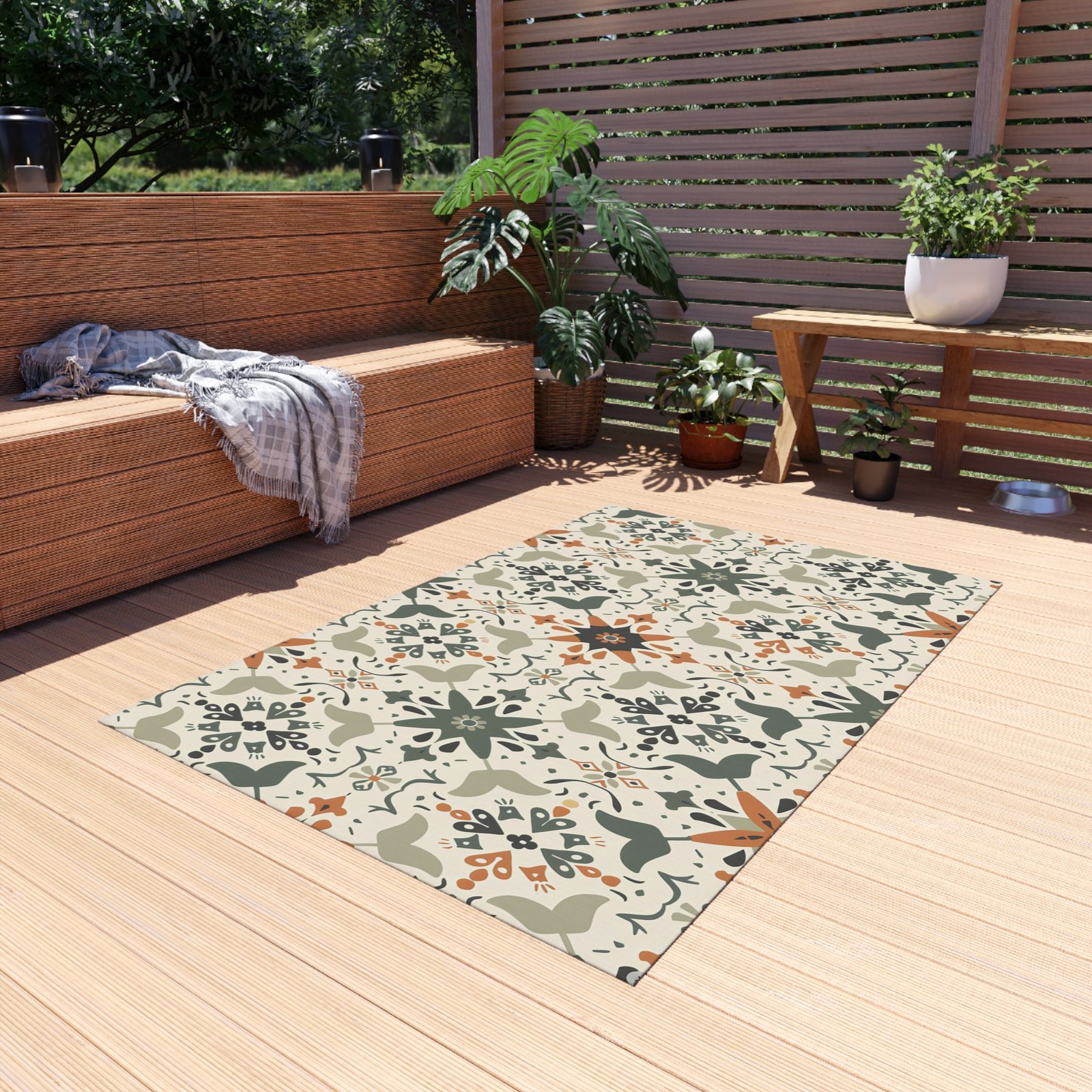 Elevate your outdoor space with this stylish Outdoor Rug, designed to bring a vibrant touch to patios, decks, or garden areas. Made from plush 100% polyester chenille, it provides a comforting underfoot feel while resisting pilling and wrinkles. The bright, colorful patterns will liven up your outdoor gatherings, making them feel festive and welcoming. Perfect for those who love to entertain or unwind in their outdoor haven, this rug is suitable for summer barbecues, cozy fall evenings, or holiday gatherings. Ideal for anyone seeking style and functionality in their outdoor decor, this rug makes a delightful gift for housewarmings, wedding celebrations, or seasonal decorations.