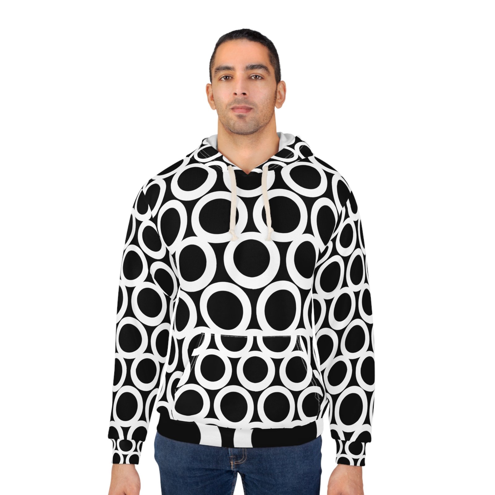 Elevate your casual wardrobe with this stylish Unisex Pullover Hoodie. The all-over design showcases vibrant colors, making it a standout piece for any occasion. Experience comfort and warmth with its spacious kangaroo pocket, perfect for chilly days or simply to keep your hands cozy. The adjustable hood adds versatility, letting you customize the fit to your liking. Made from 100% durable polyester, this medium-weight fabric retains its shape while providing quick-drying convenience.