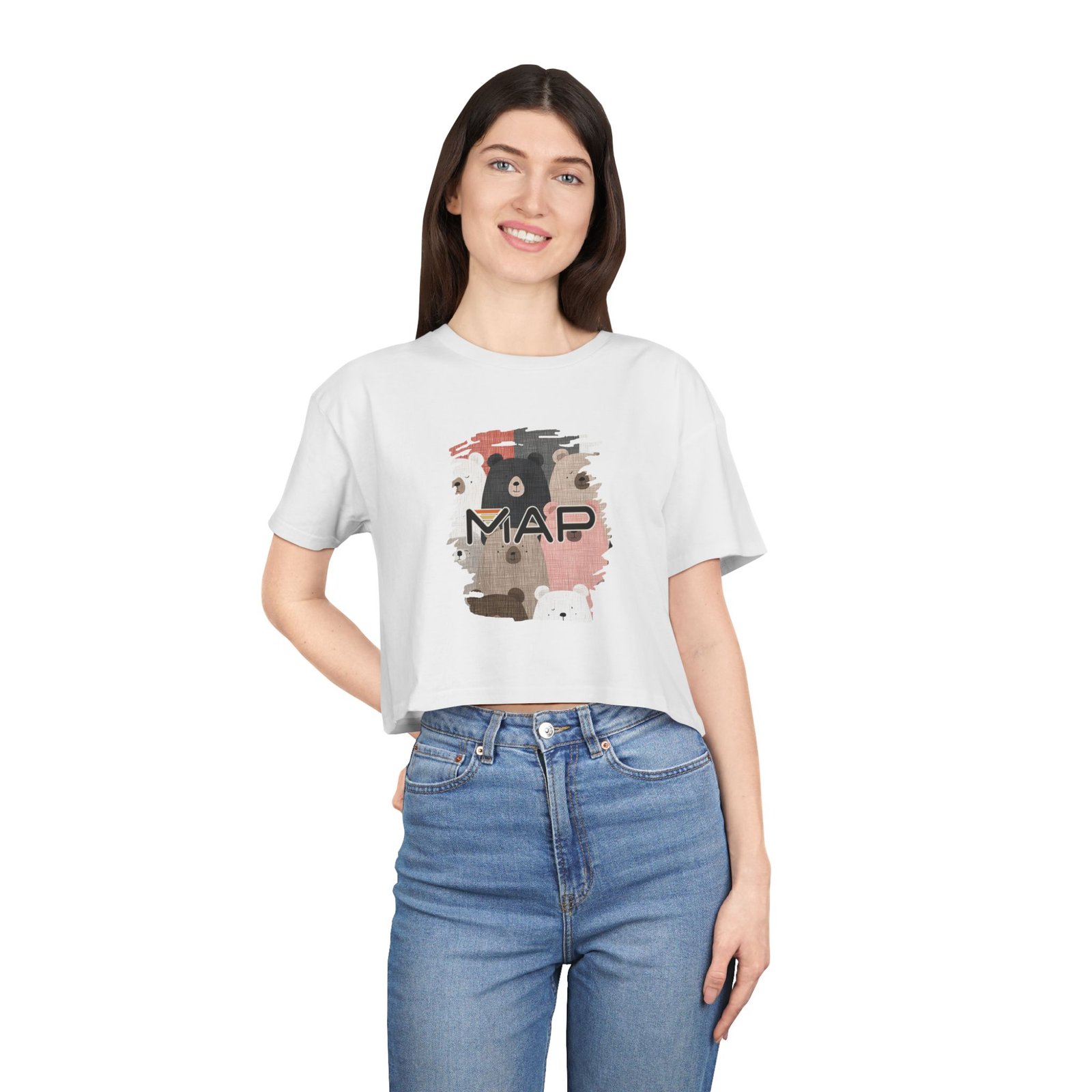 Stylish Women’s Crop Tee with MAP Design, Trendy Summer T-Shirt, Casual Streetwear, Gift for Her, Graphic Crop Top