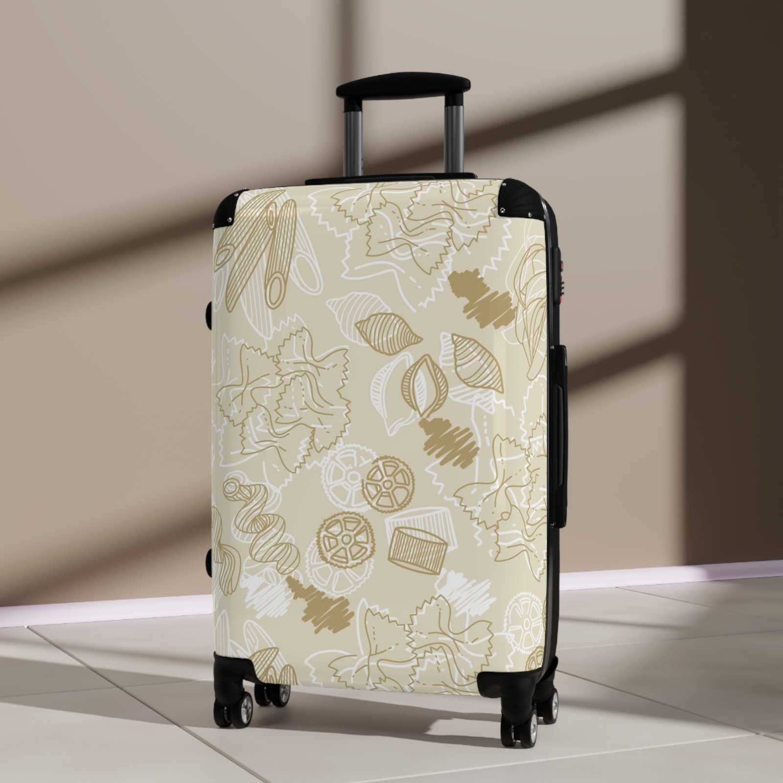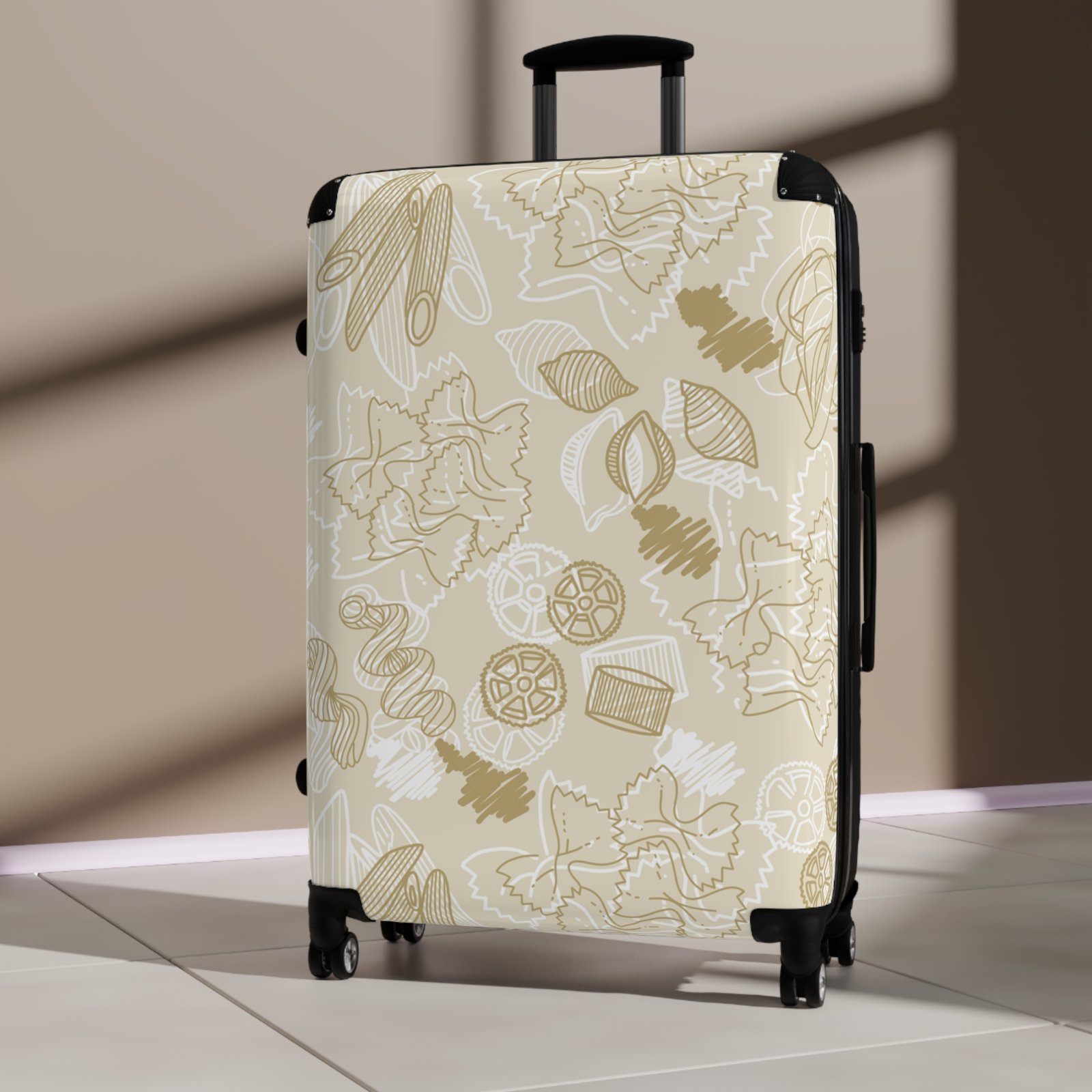 Please note: Your design is printed on a canvas that may slightly crease near the suitcase’s edges.