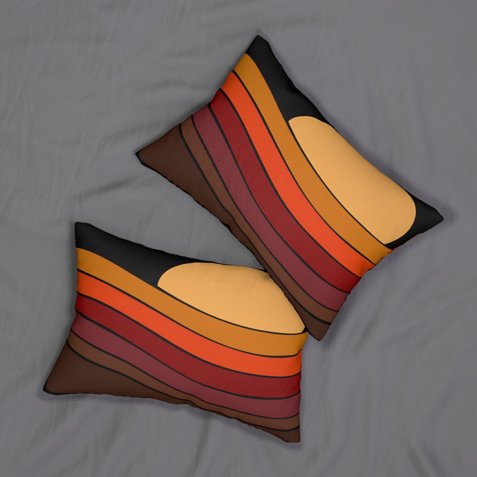 Transform your living space with this vibrant lumbar pillow that brings warmth and character to any room. Its captivating design features a sun setting over layered earth tones, evoking feelings of tranquility and natural beauty. Perfect for cozying up on the couch or adding flair to your bedroom, this pillow complements both modern and rustic decor. Ideal for anyone looking to enhance their home aesthetics, it makes a thoughtful gift for housewarmings, birthdays, or just to treat yourself. Celebrate the beauty of nature every day!