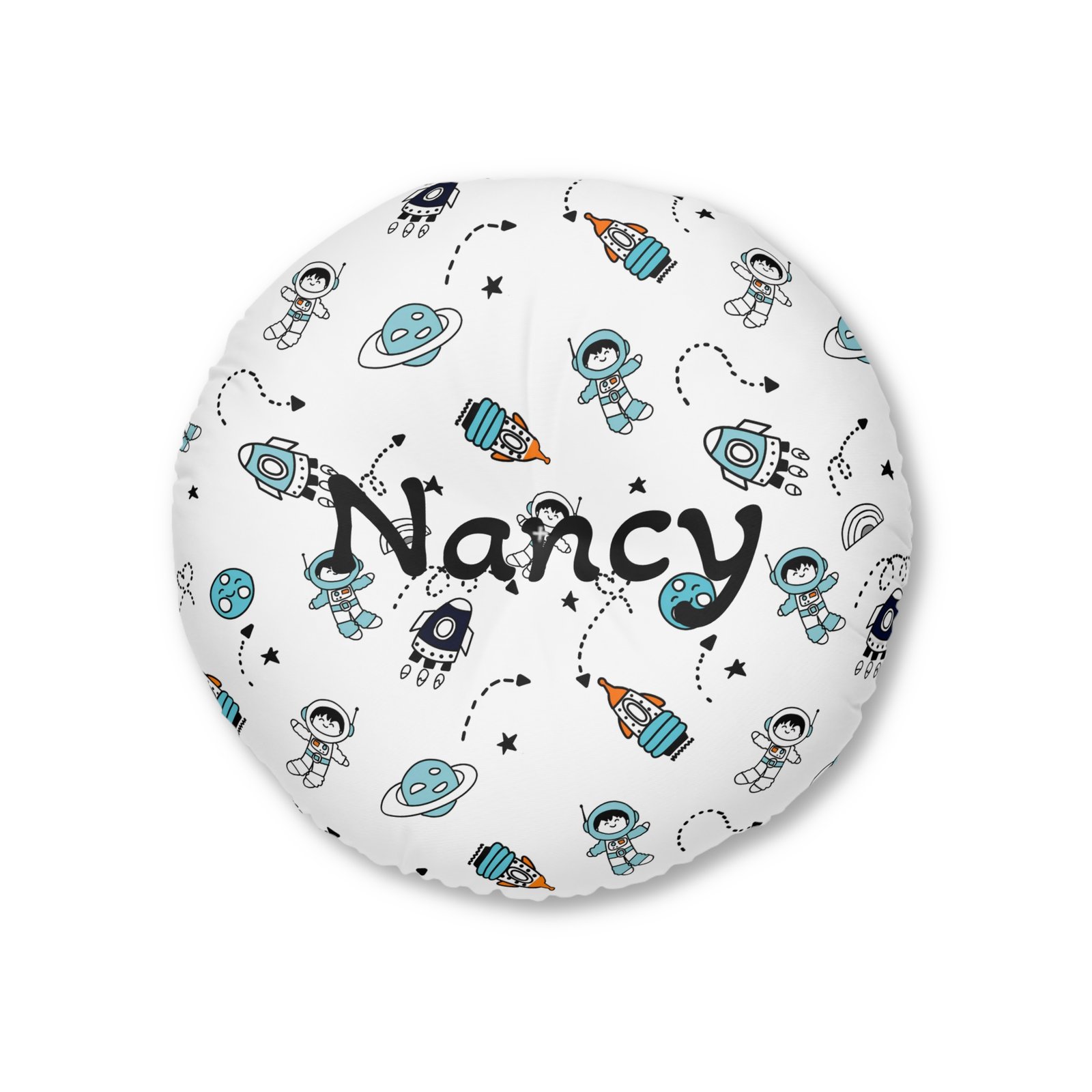 Add a custom touch to any resting area around the house with a round tufted floor pillow, which has a white stitching in the middle, that features your custom ideas. Shipped with its own filling, this floor pillow is as comfy as it is stylish. Bring it to life by adding custom artwork or catchy slogans.