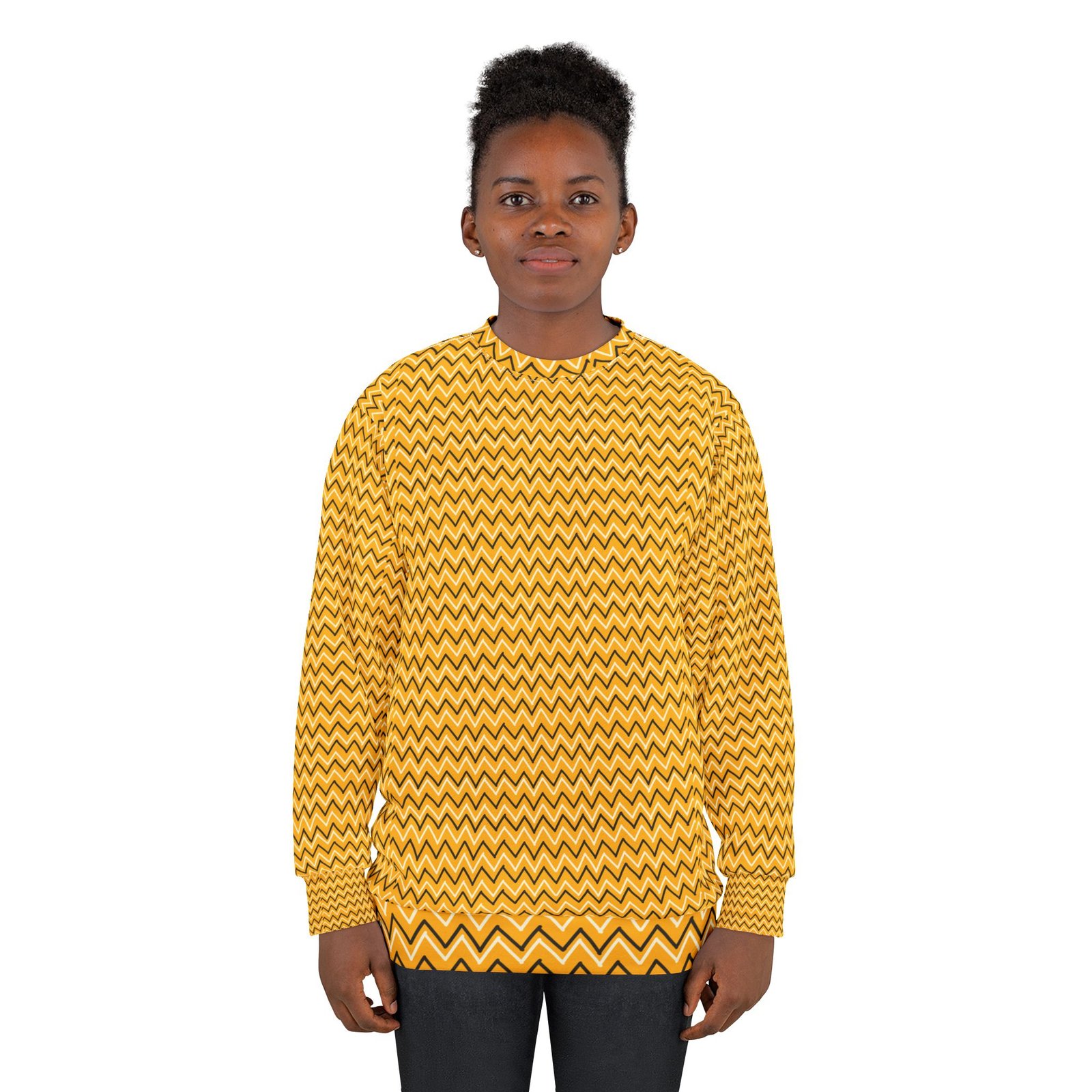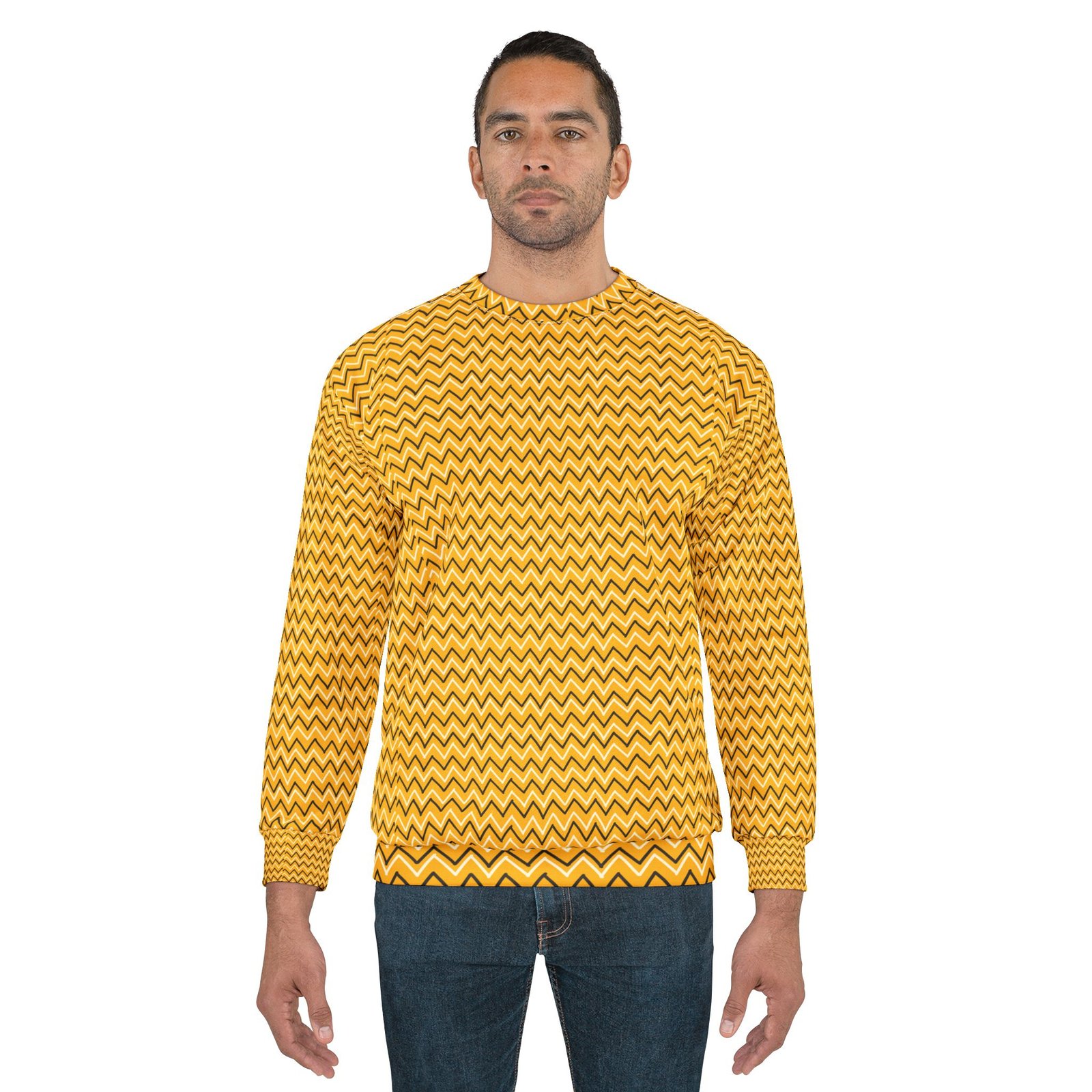 This all over print crewneck sweatshirt is the perfect example of cool. With quality all-over printing capabilities, you won’t be worried about white lines at the seams. This fleece is custom cut and sewn, featuring a crew neck and set-in sleeves to keep you warm.