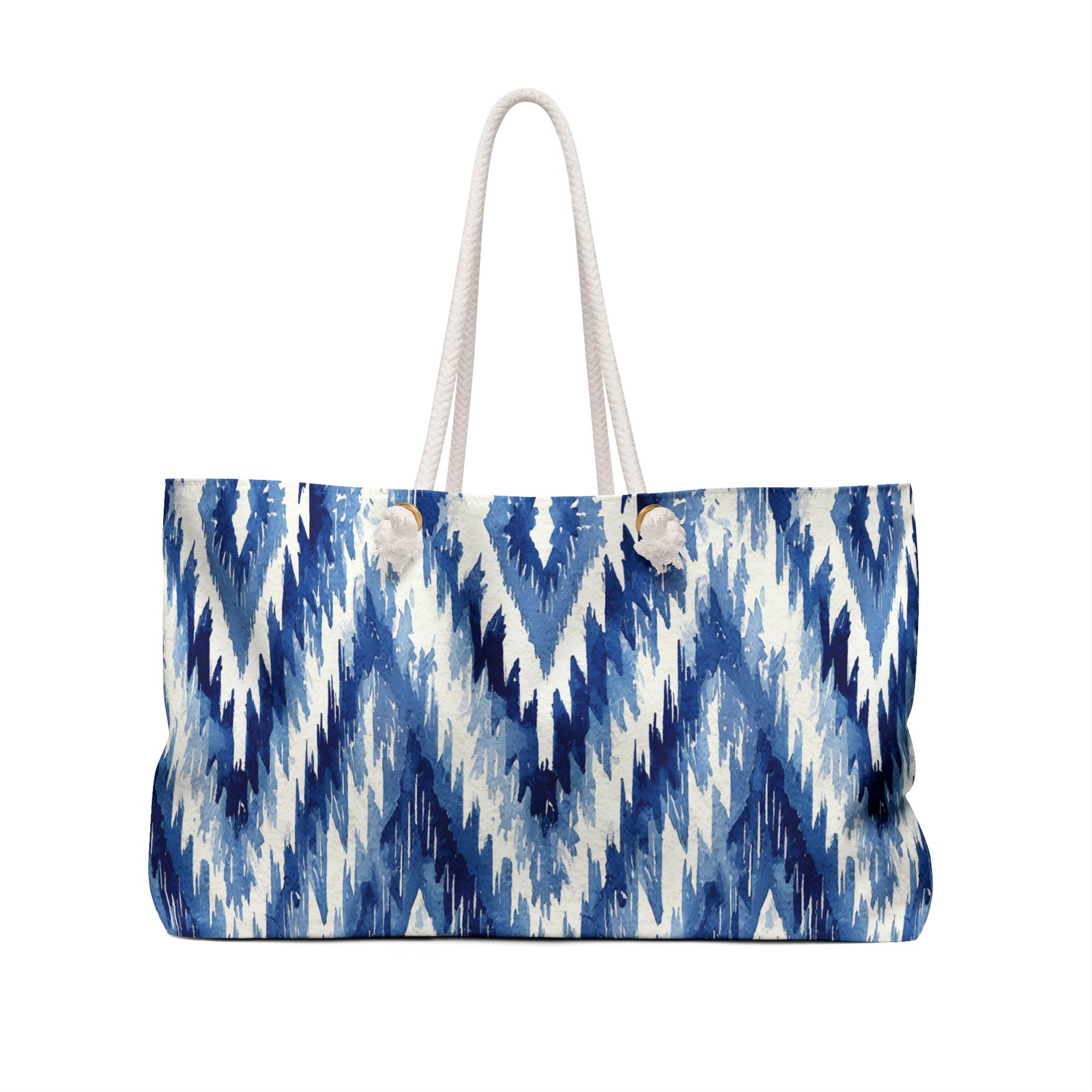 Our oversized Weekender Tote is perfect for your weekend at the beach or in town. The wide-mouthed, durable bag holds a generous amount of personal items and is easily held by its thick rope handles.