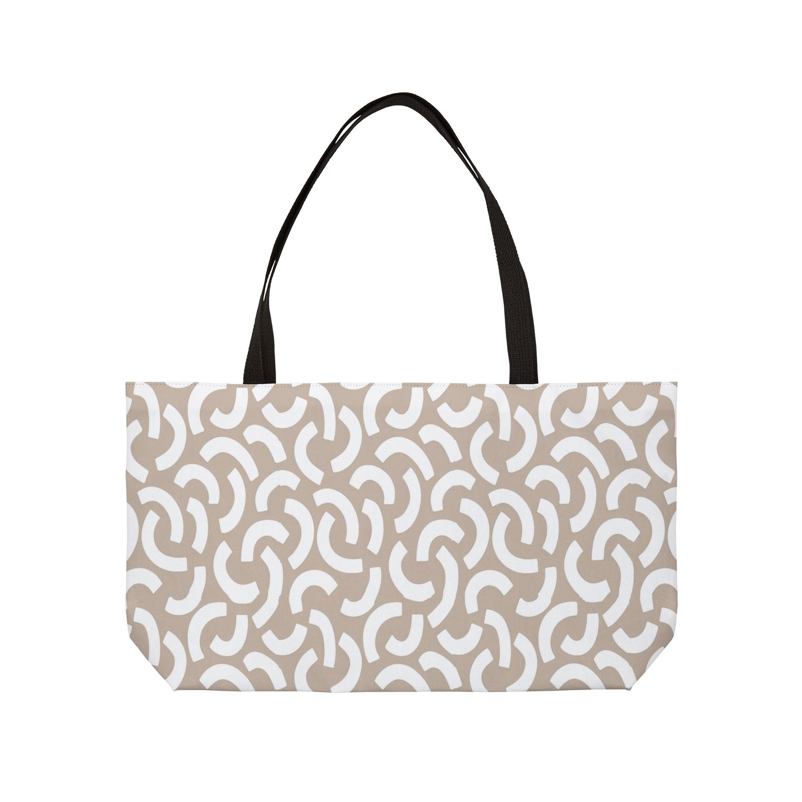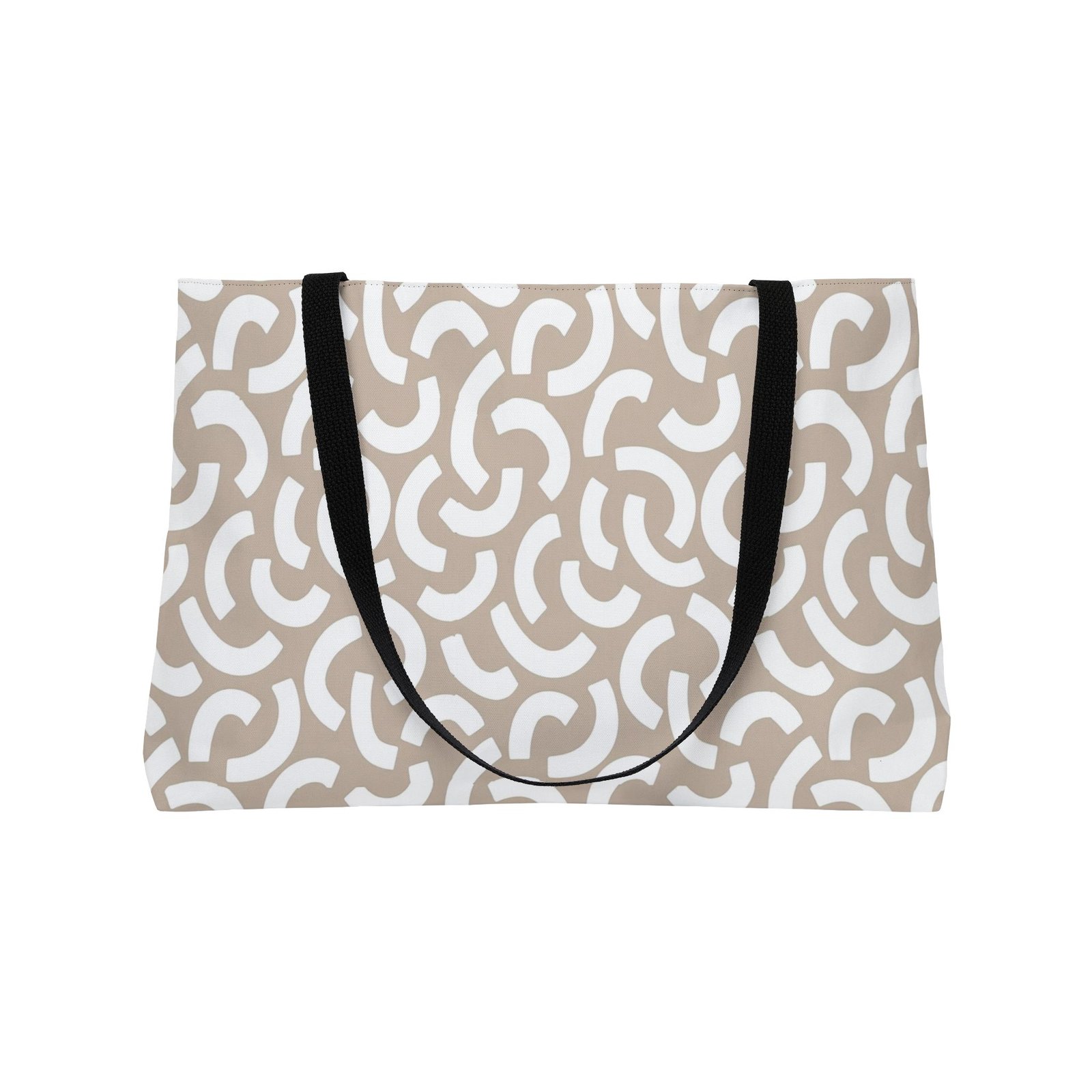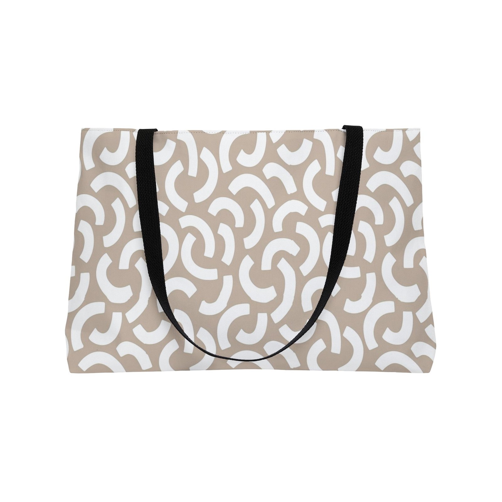 This personalized weekender bag comes in one size – 24″ x 13″ (60.9 cm x 33 cm) – perfect for those who love to travel light. Its t-bottom construction and black handles give it a sleek, classic look. Start designing, and we’ll print your art on the 100% spun polyester in vibrant colors.