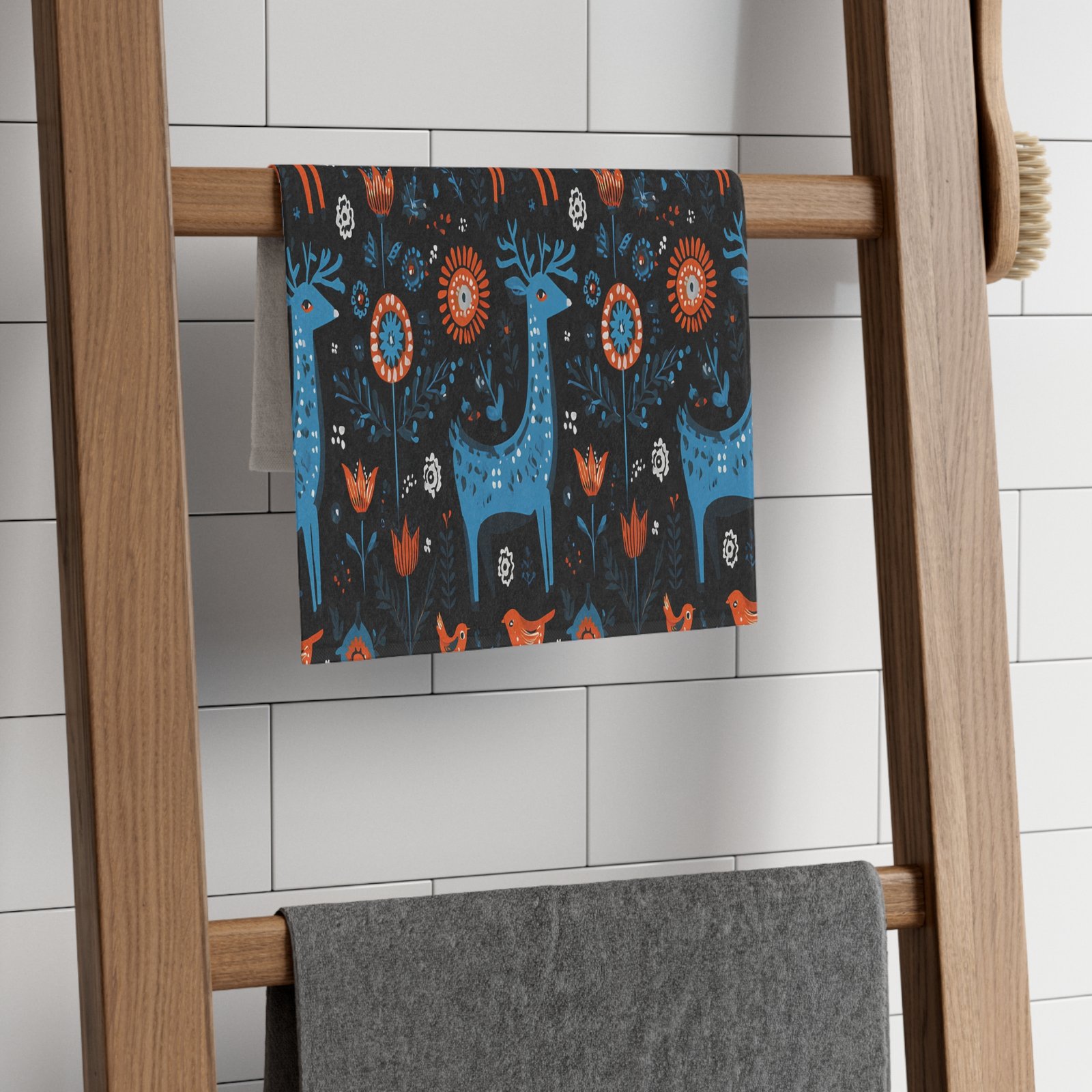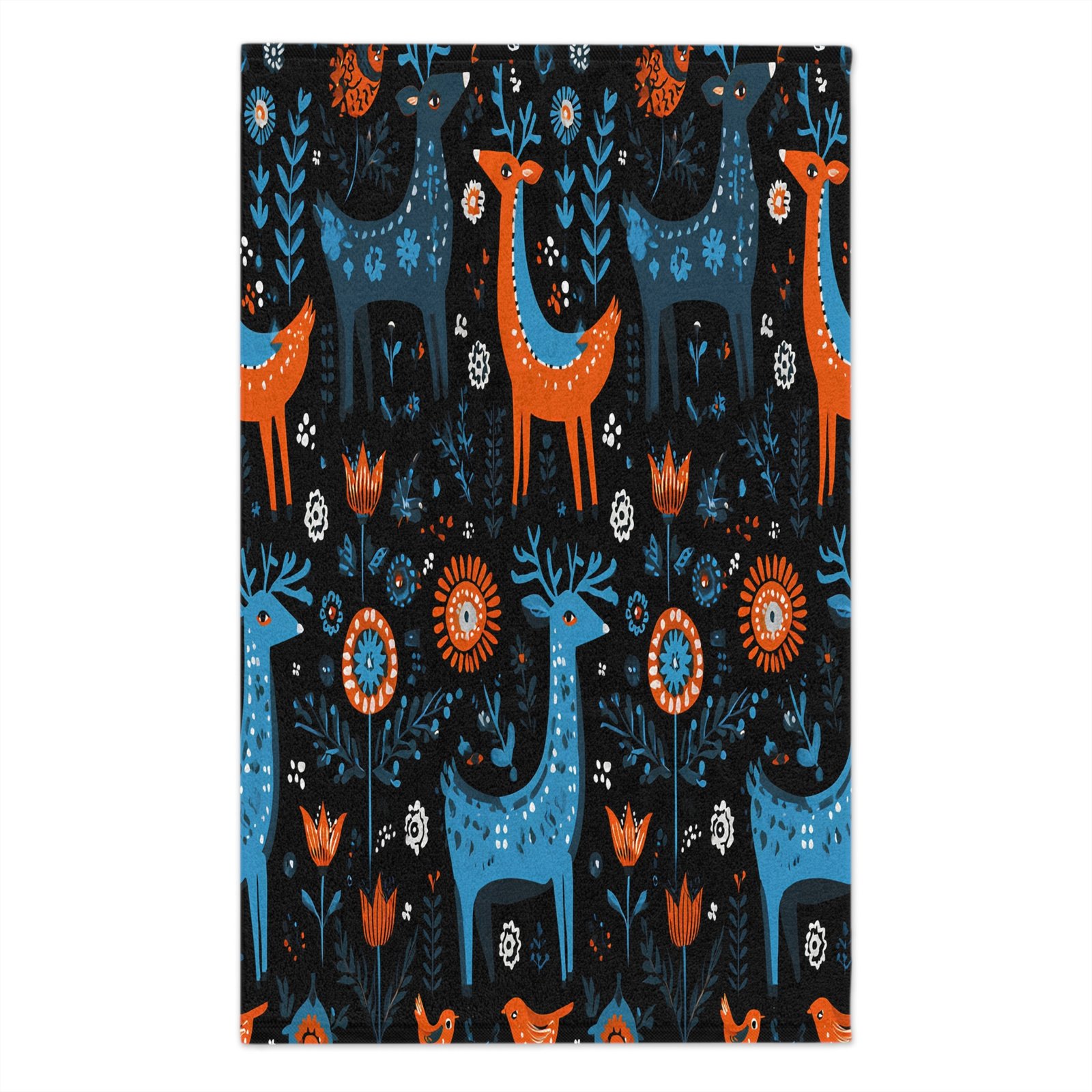 Introducing a vibrant and whimsical Rally Towel that brings a splash of color and fun to any event! This towel features an enchanting design of stylized deer and floral elements in bold hues of blue and orange against a dark background, creating an eye-catching statement piece. Perfect for sports events, picnics, or beach days, it not only serves a practical purpose but also adds a playful touch to your outdoor adventures. Ideal for animal lovers, nature enthusiasts, and those who enjoy unique, artistic designs! With its quick-drying and absorbent materials, this towel is a fantastic companion for summer vacations, family outings, or as a delightful gift for birthdays and holidays!