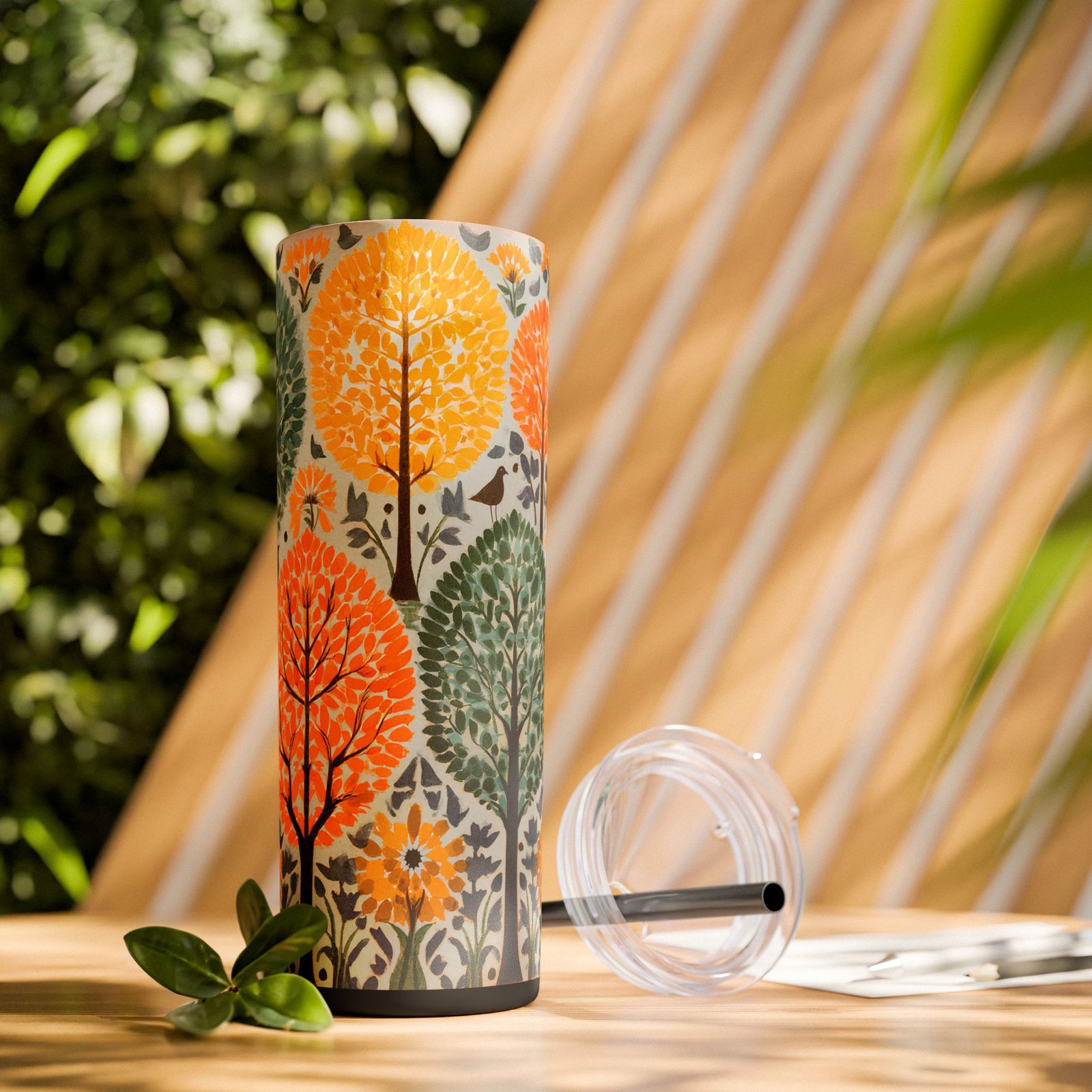 Whimsical Forest-Themed Skinny Tumbler | 20oz, Travel Mug, Eco-Friendly Drinkware, Gift for Nature Lovers, Colorful Beverage Container