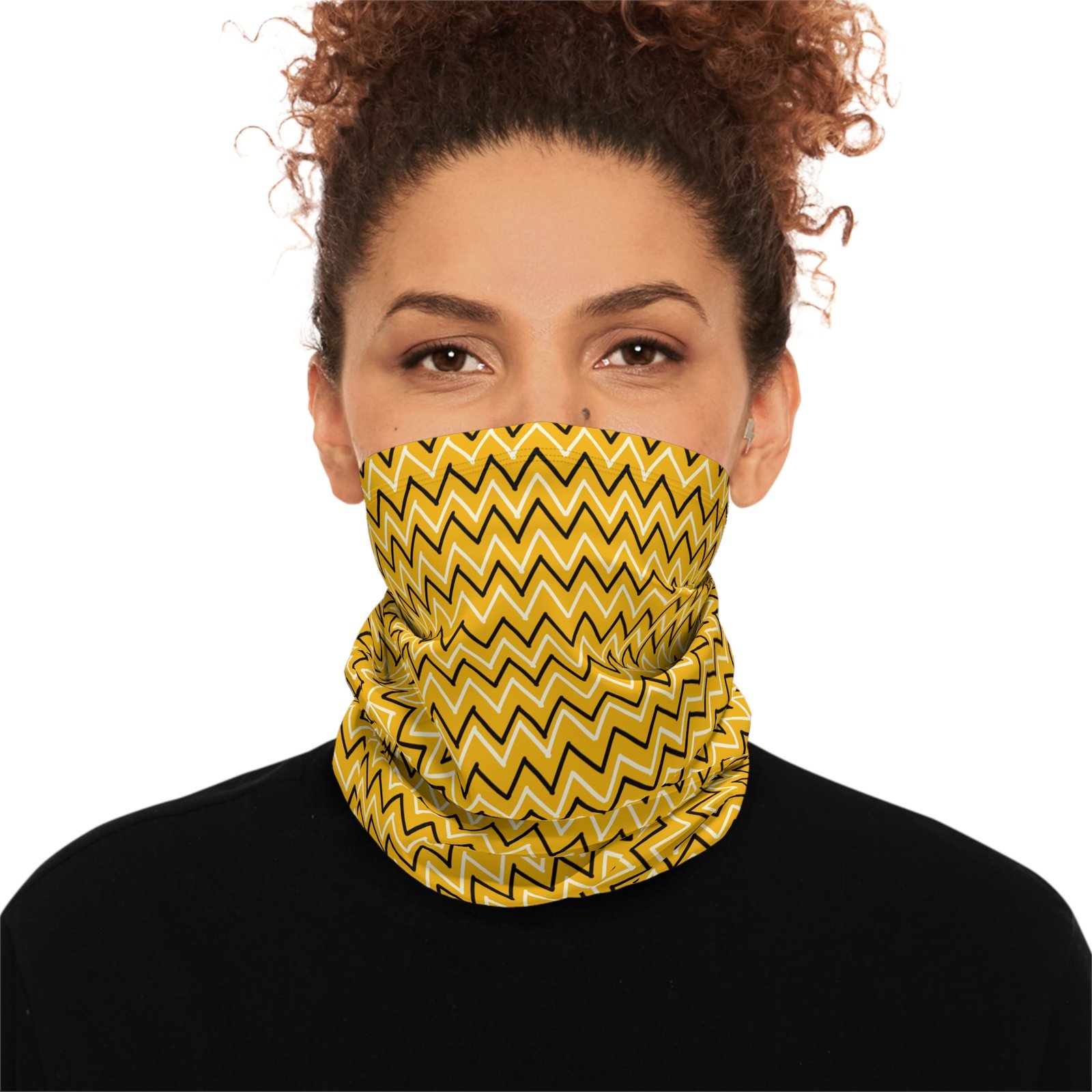 Designed to keep your face and neck warm despite the forecast, these winter neck gaiters are made with a heavyweight, fleece-like fabric (90% Polyester-10% Spandex). Use the drawstring to find the perfect fit, and enjoy skiing, snowboarding, snowshoeing, or any winter activity with custom style and ample warmth.